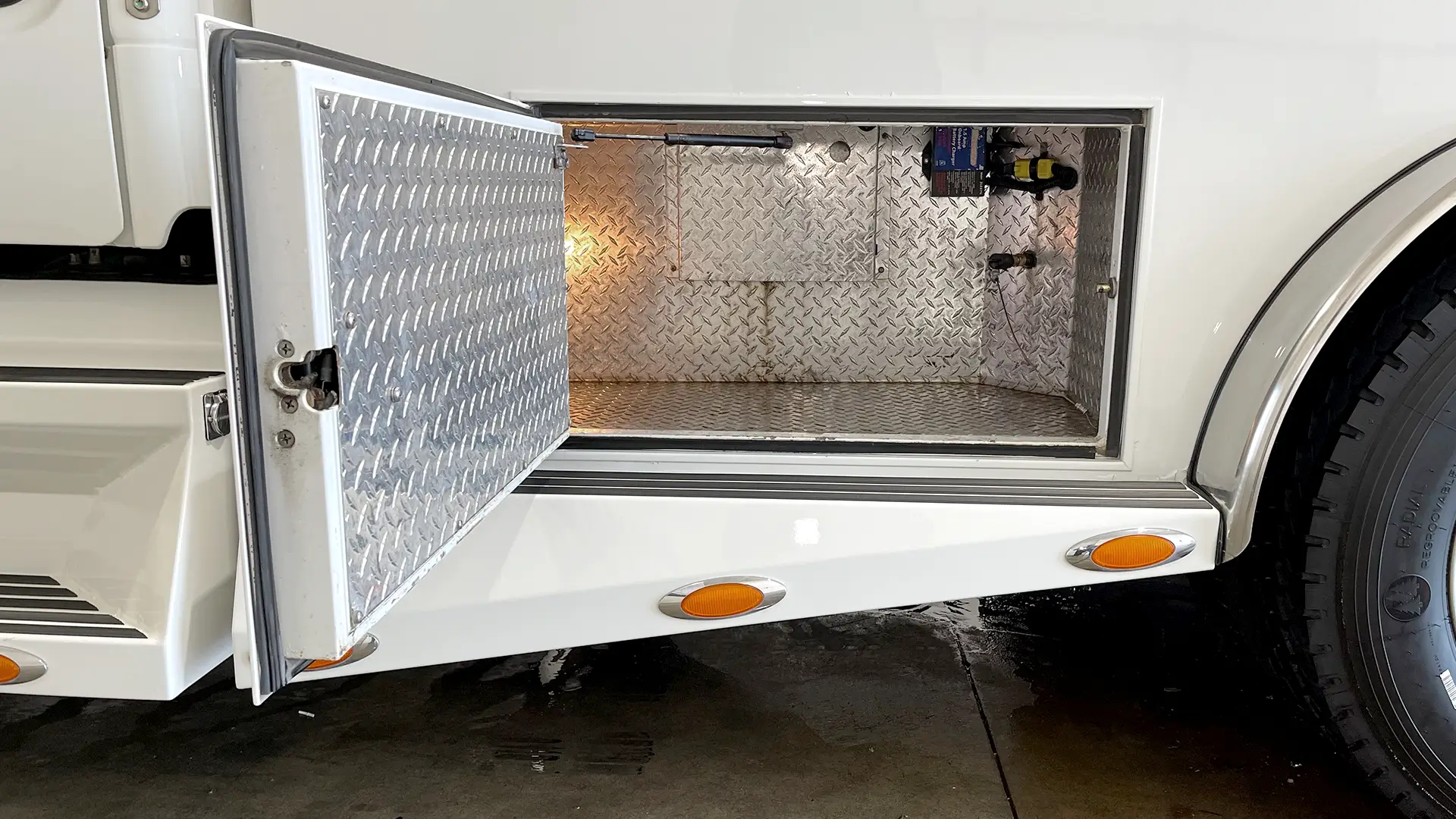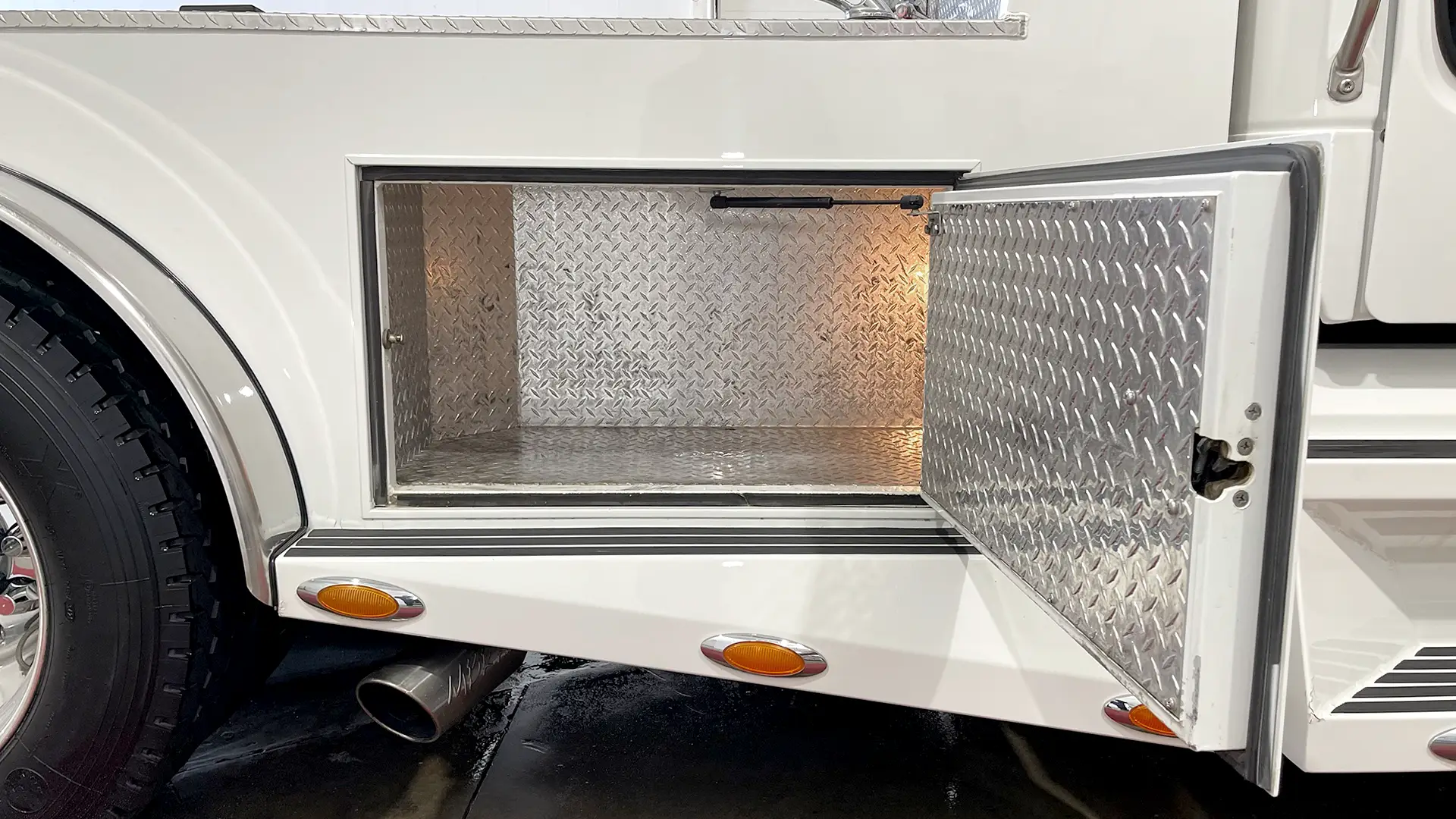 - Diamond-Plated Exterior Storage Compartments