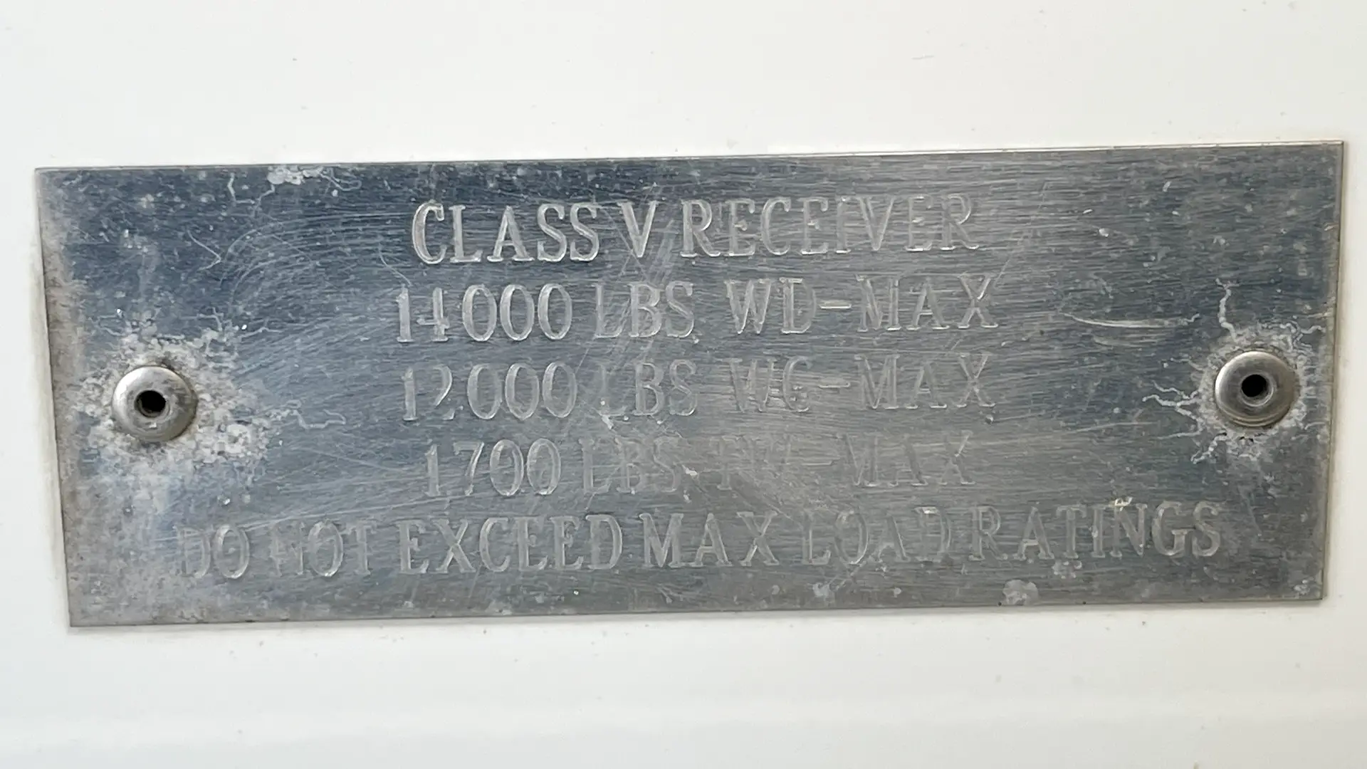 - 20K 5th Wheel Hitch; Rear Class V Receiver 14,000 lbs. WD Max, 12,000 lbs. WG Max, 1,700 Lbs. TW Max