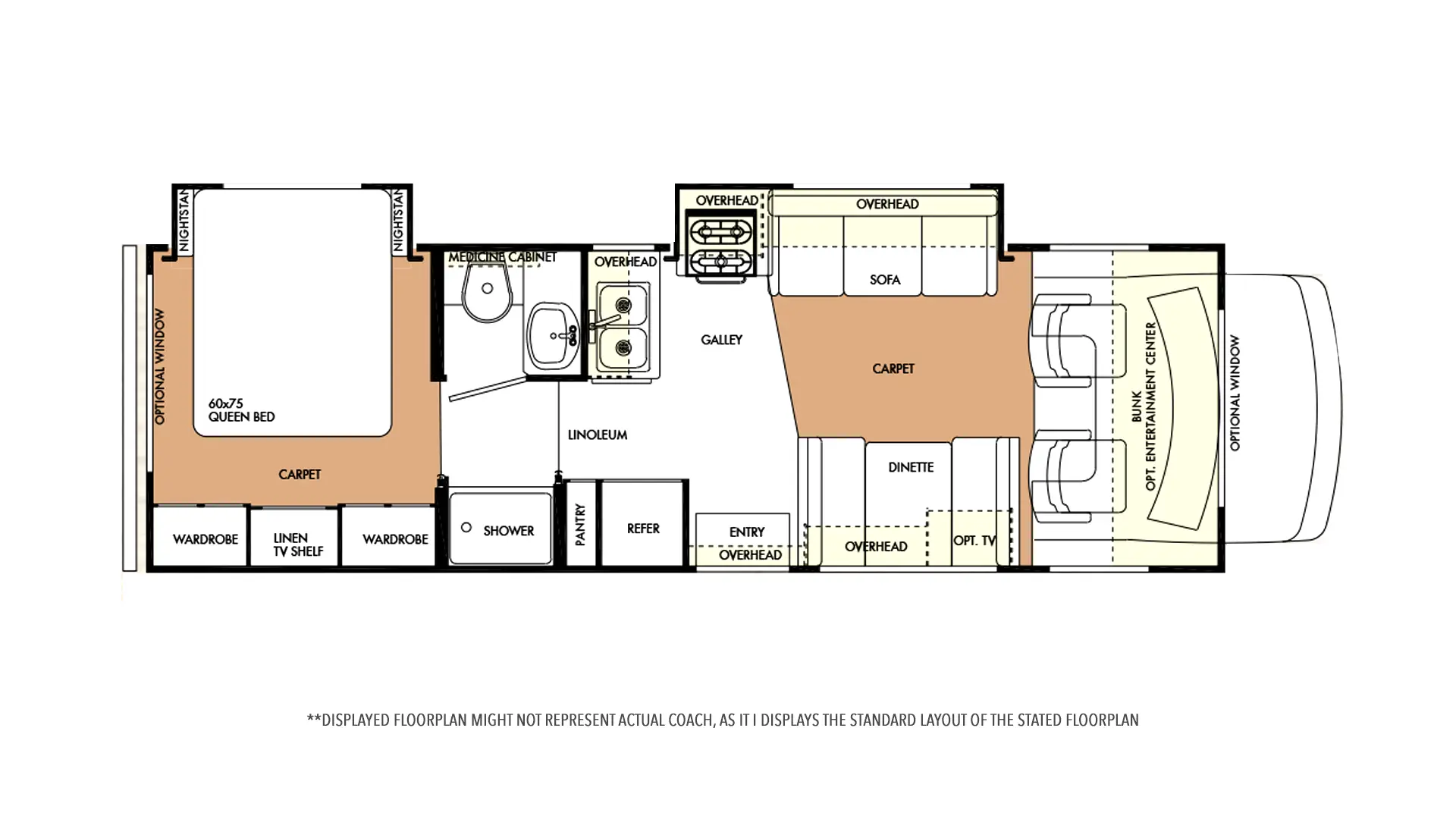 | Overhead Area | Cab Over Entertainment Centre w/24” Flatscreen CRT TV |