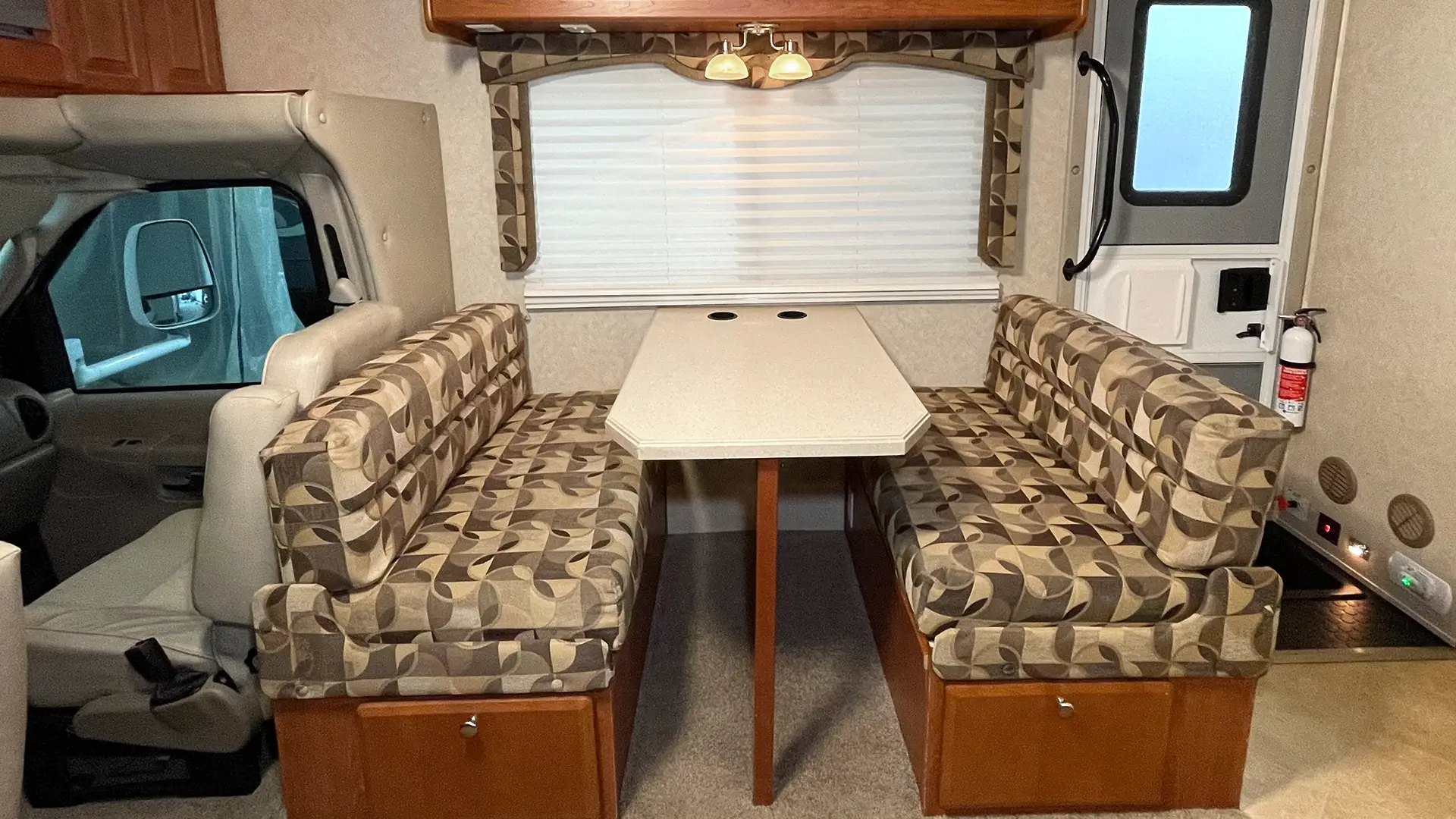 | Furniture | 2-Way Sofa w/Convertible Sleeping; Booth-Style Dinette Table |