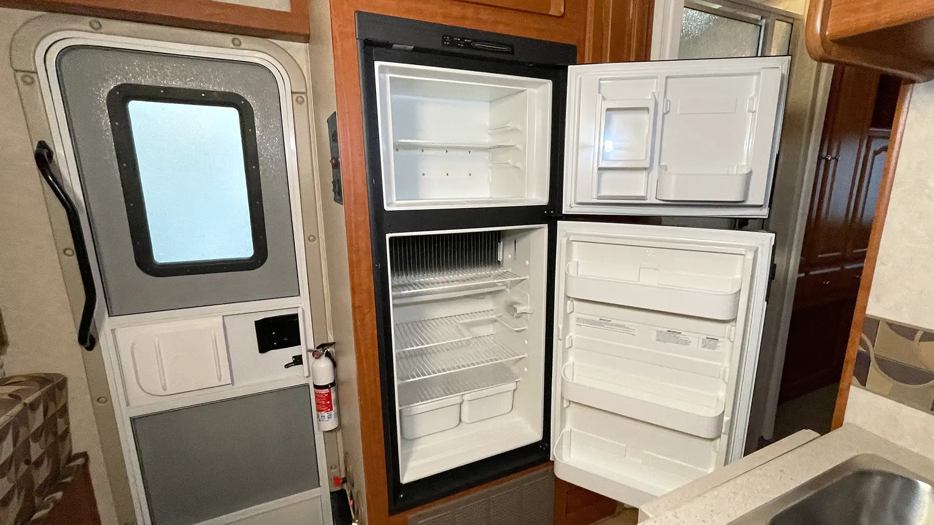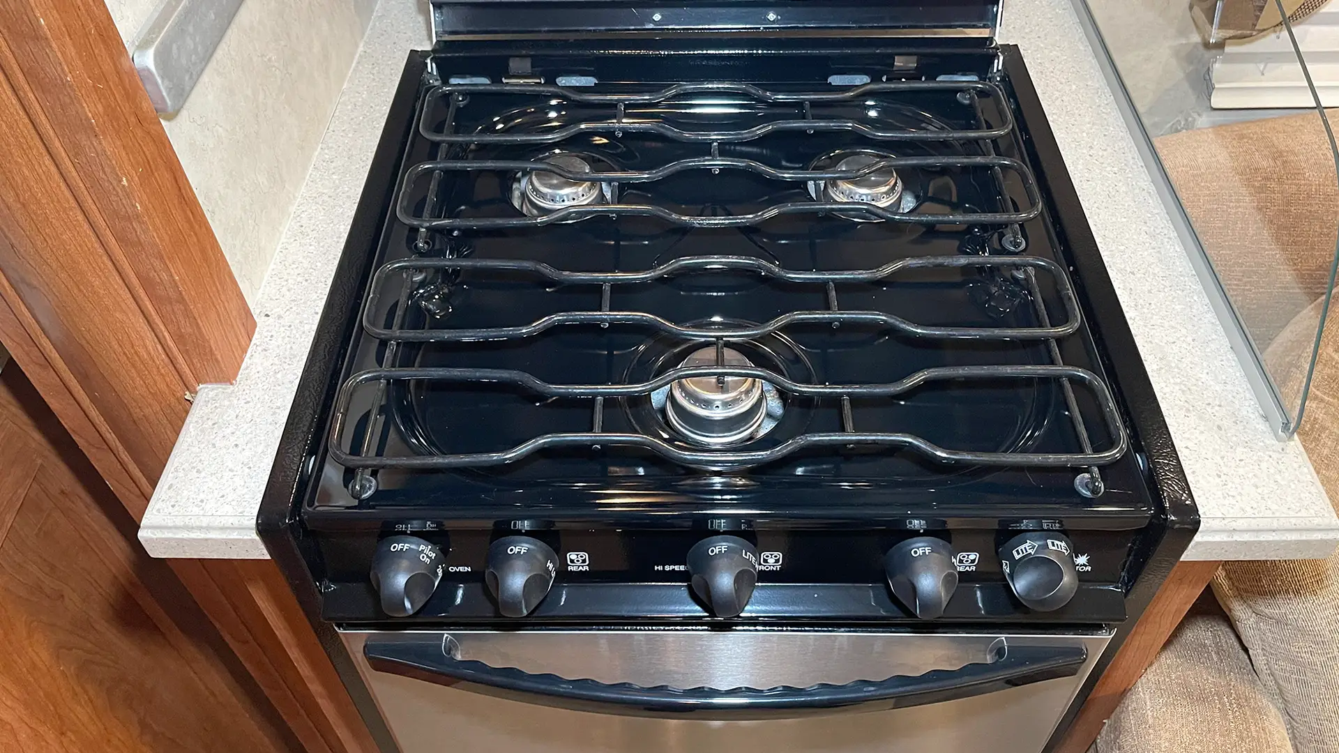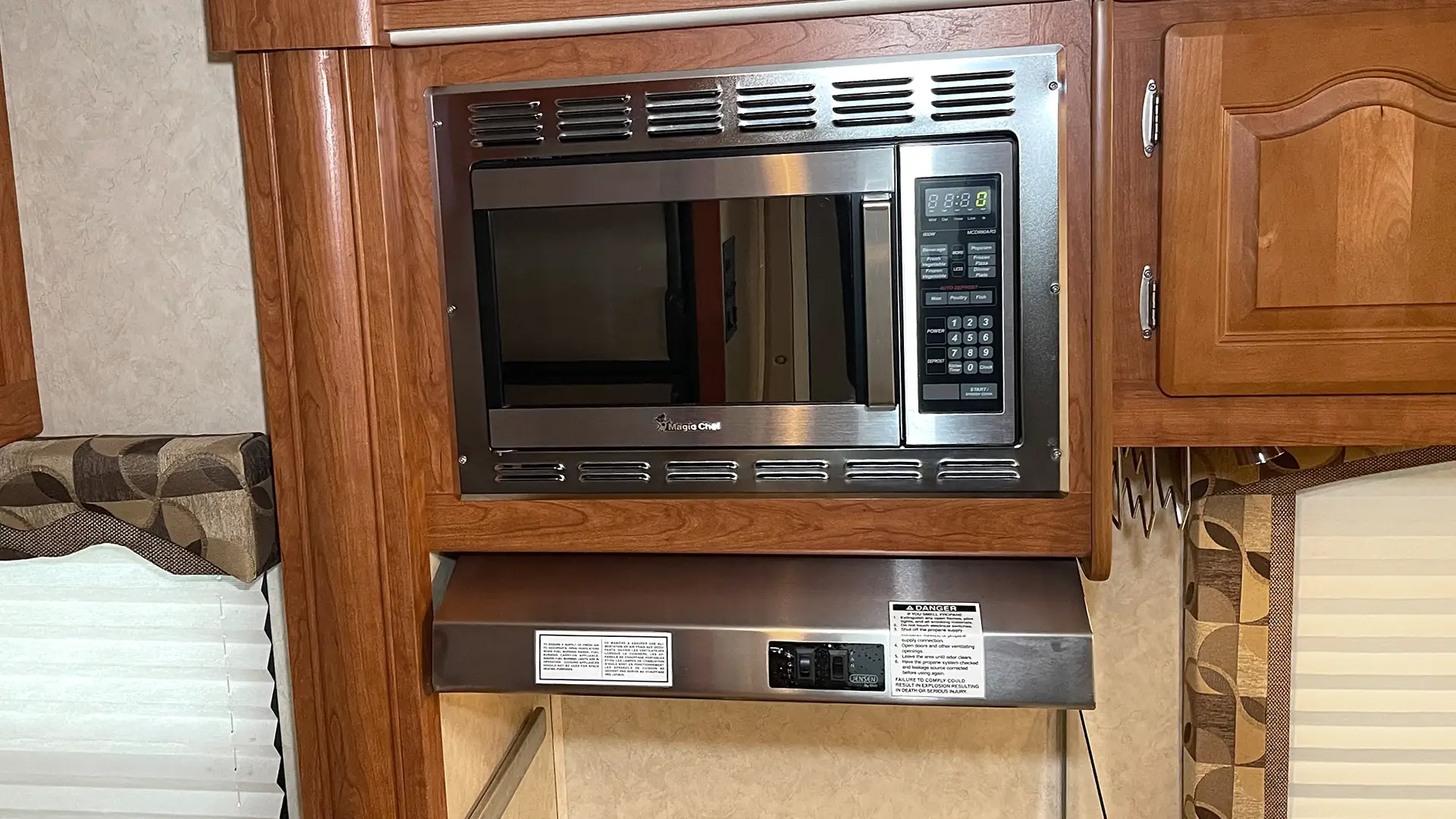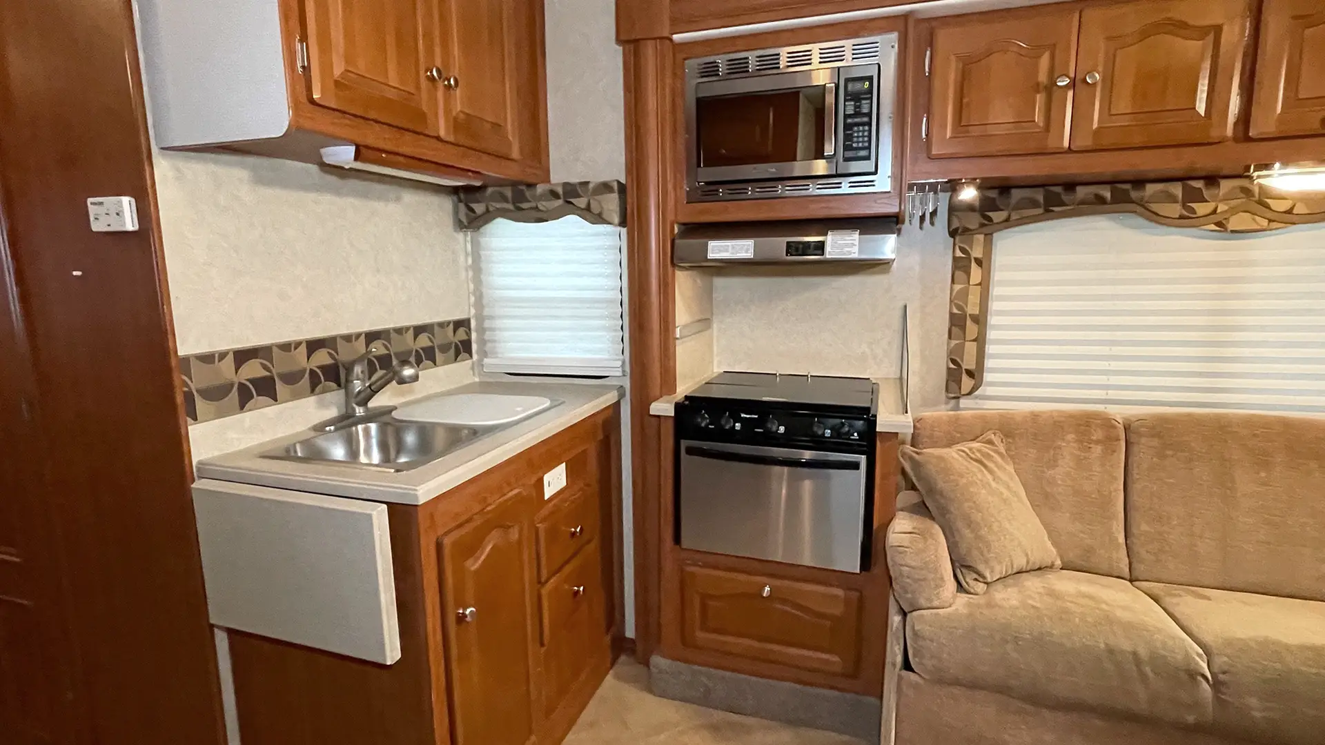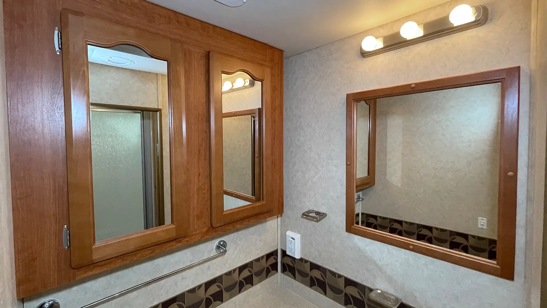 | Finishes | Solid Surface Edge Countertops; Cherry Wood Cabinetry; “Soft-Touch” Vinyl Padded Ceiling; Upgraded Glass Light Fixtures; Fantastic Roof Vent |
