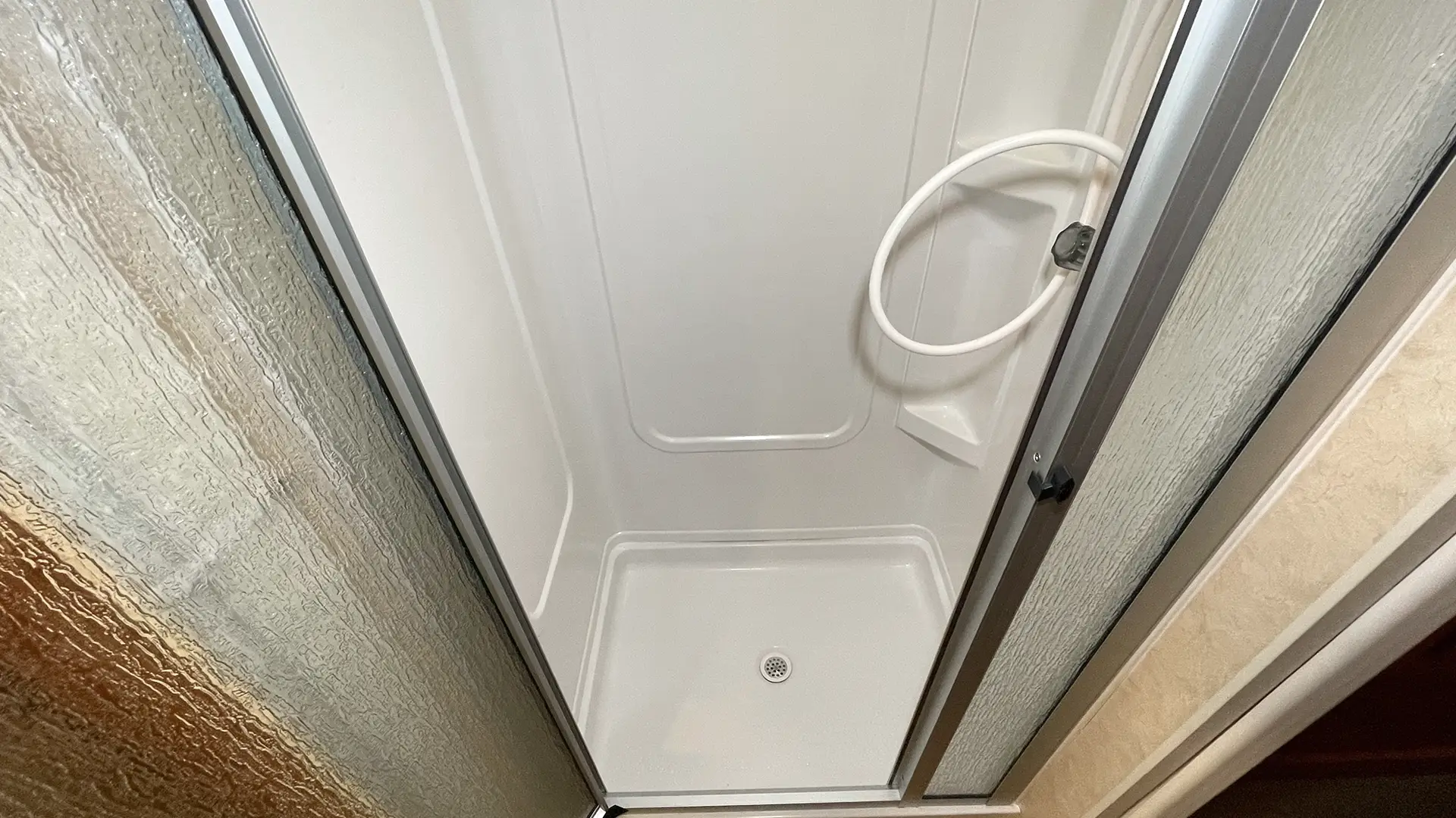 - Molded ABS Shower Pan & Surround w/Flexible Hose Extension Shower Head