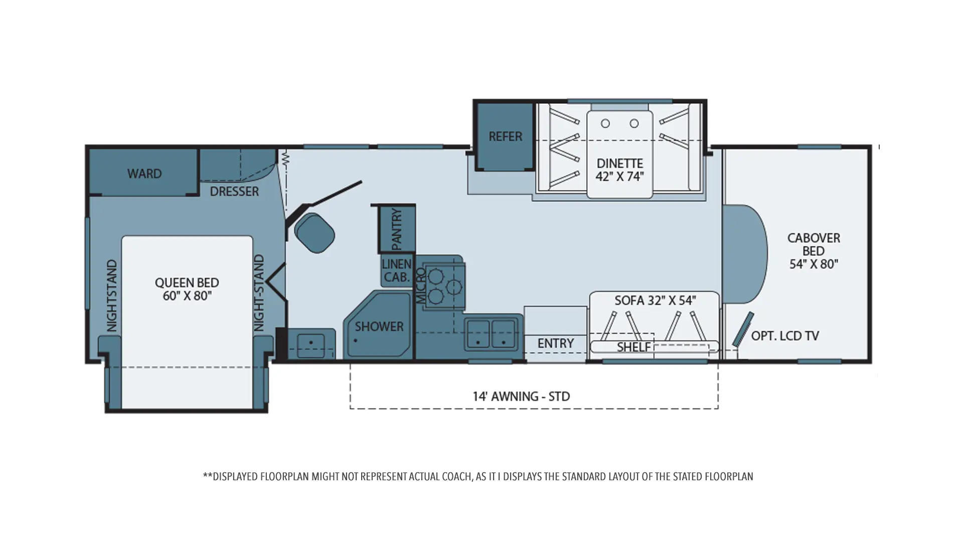 | Televisions | 32” LCD Overhead; 19” LCD Bedroom |