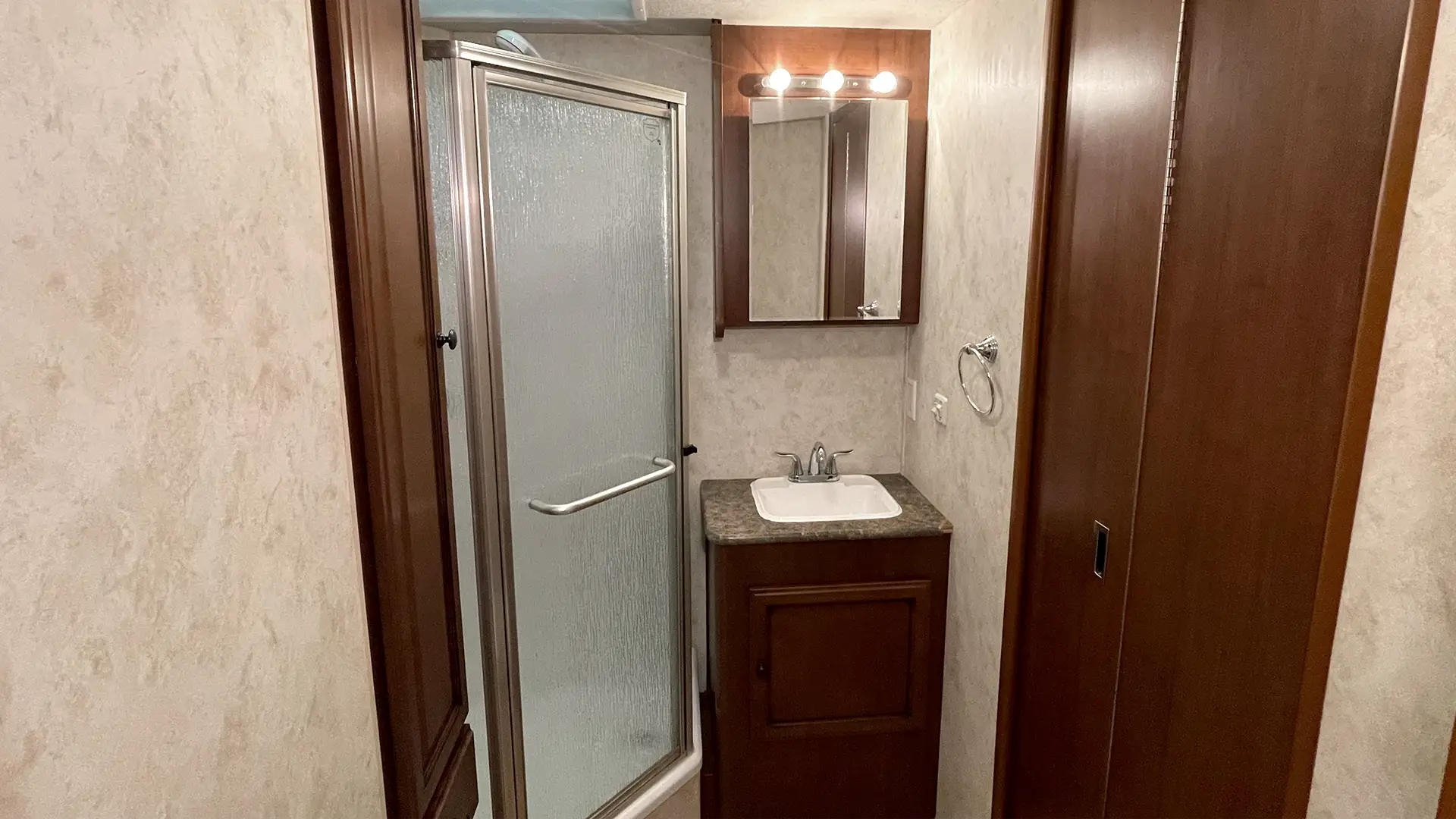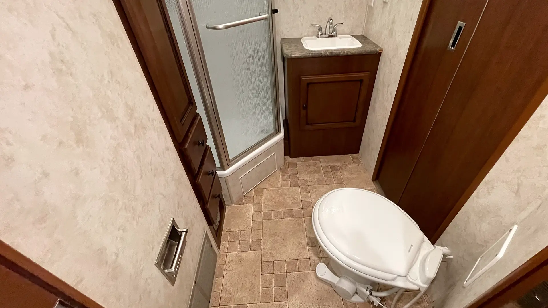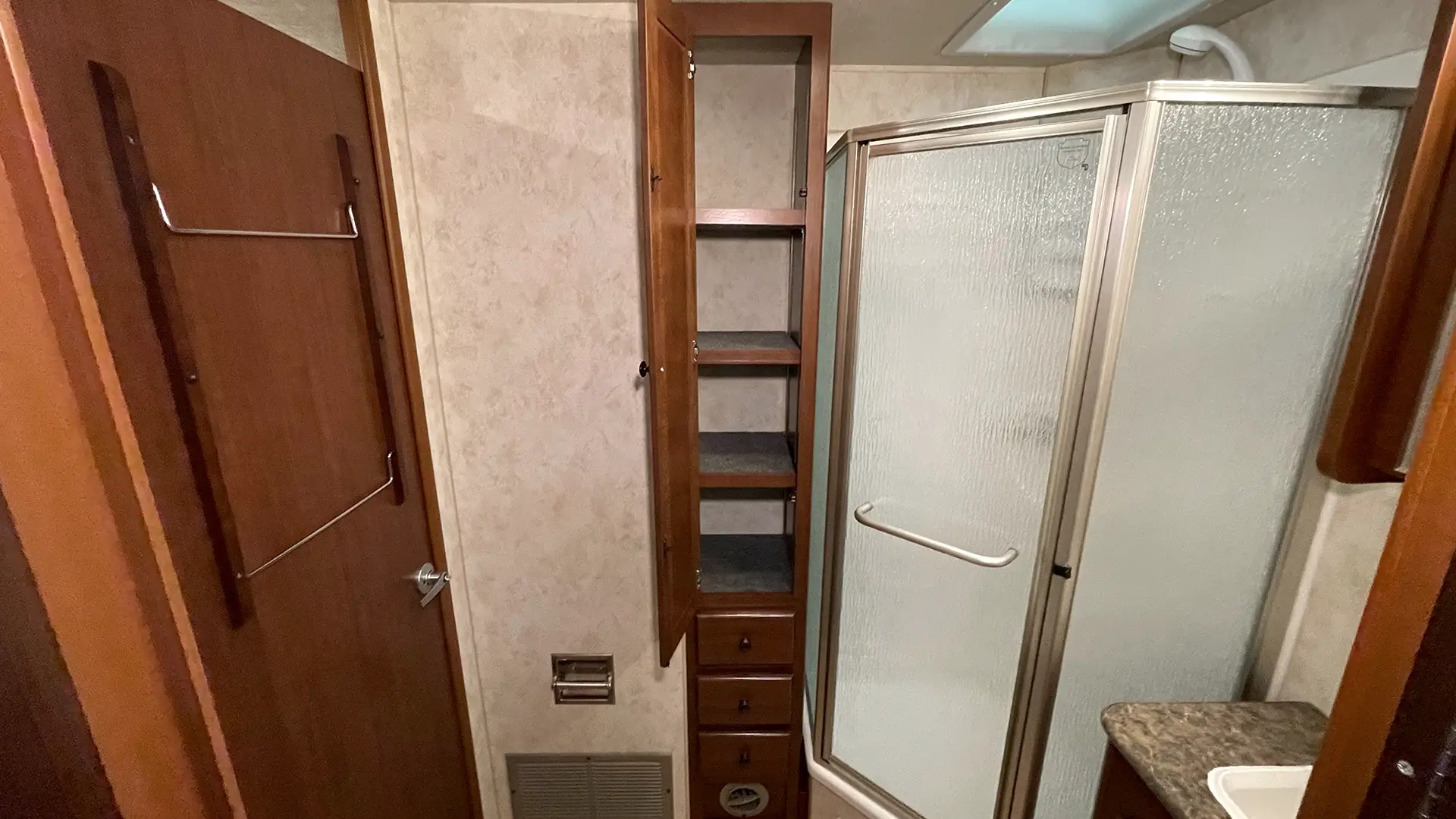 | Finishes | Linoleum Flooring; 12V Ceiling Lights; Glazed Hardwood Cabinet Doors w/Hidden Hinges |