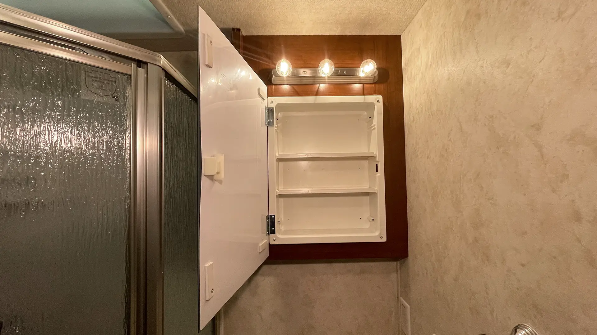 | Bathroom | Porcelain Toilet w/Foot-Flush; Mirrored-Front Medicine Cabinet; Neo-Angle Glass Shower w/Skylight; Linen Closet |