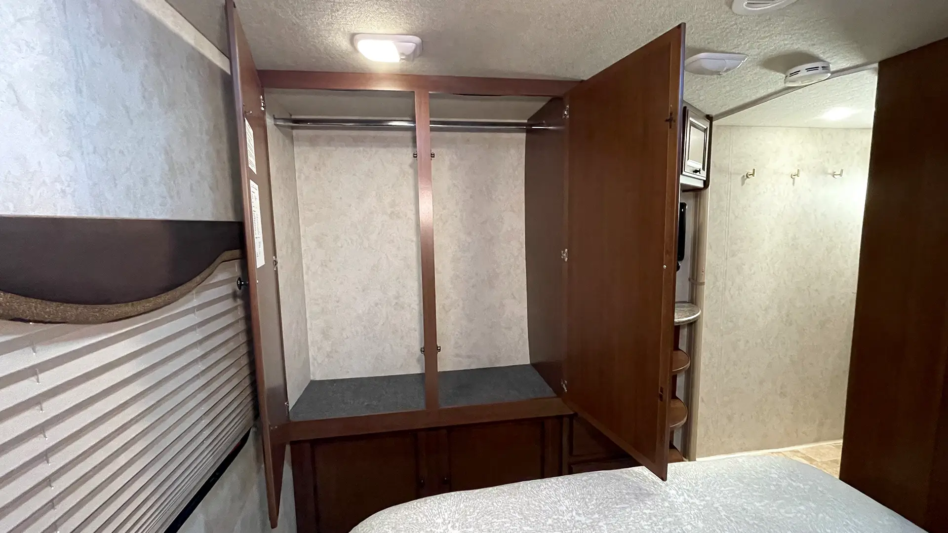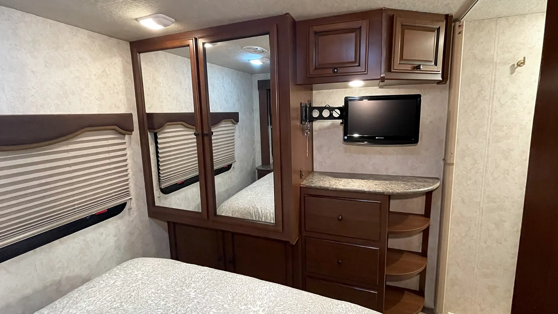 | Bedroom | Queen-Sized Bed w/Nightstands; Dresser Drawers w/Countertop; Large Wardrobe Closet w/Mirrored Doors |