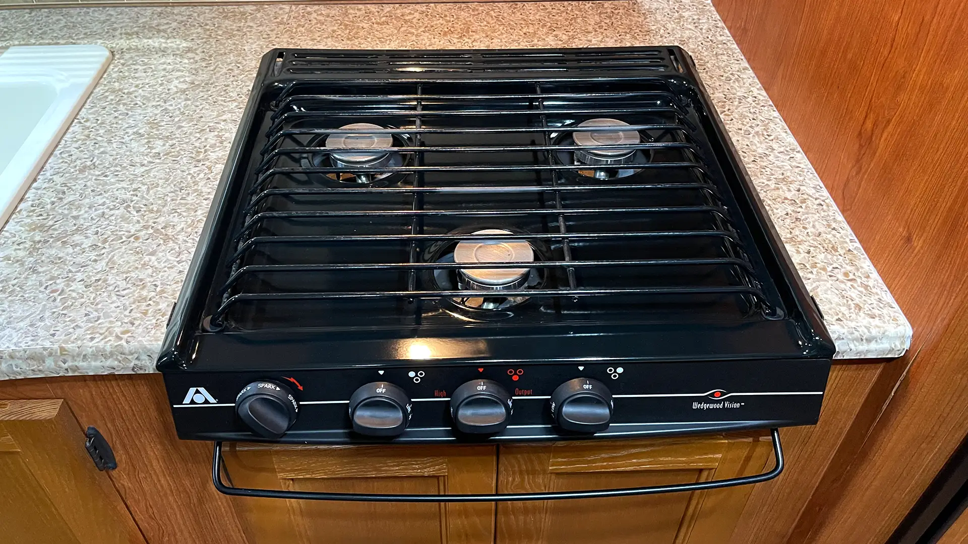 - 3-Burner Gas Range w/Power, Lighted Range Hood