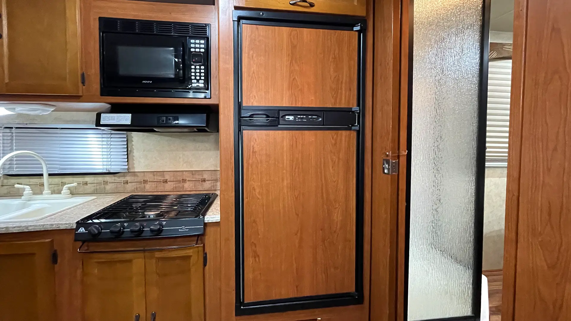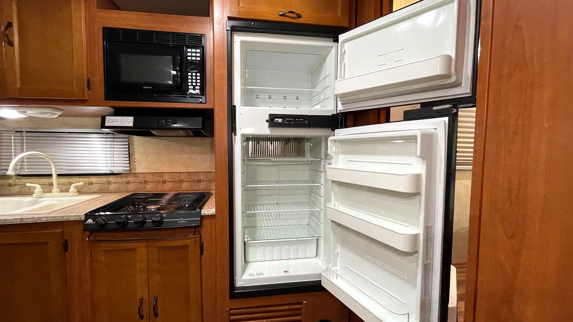 | Appliances | 3-Burner Gas Range w/Power, Lighted Range Hood; Microwave Oven; Double Door Refrigerator/Freezer |