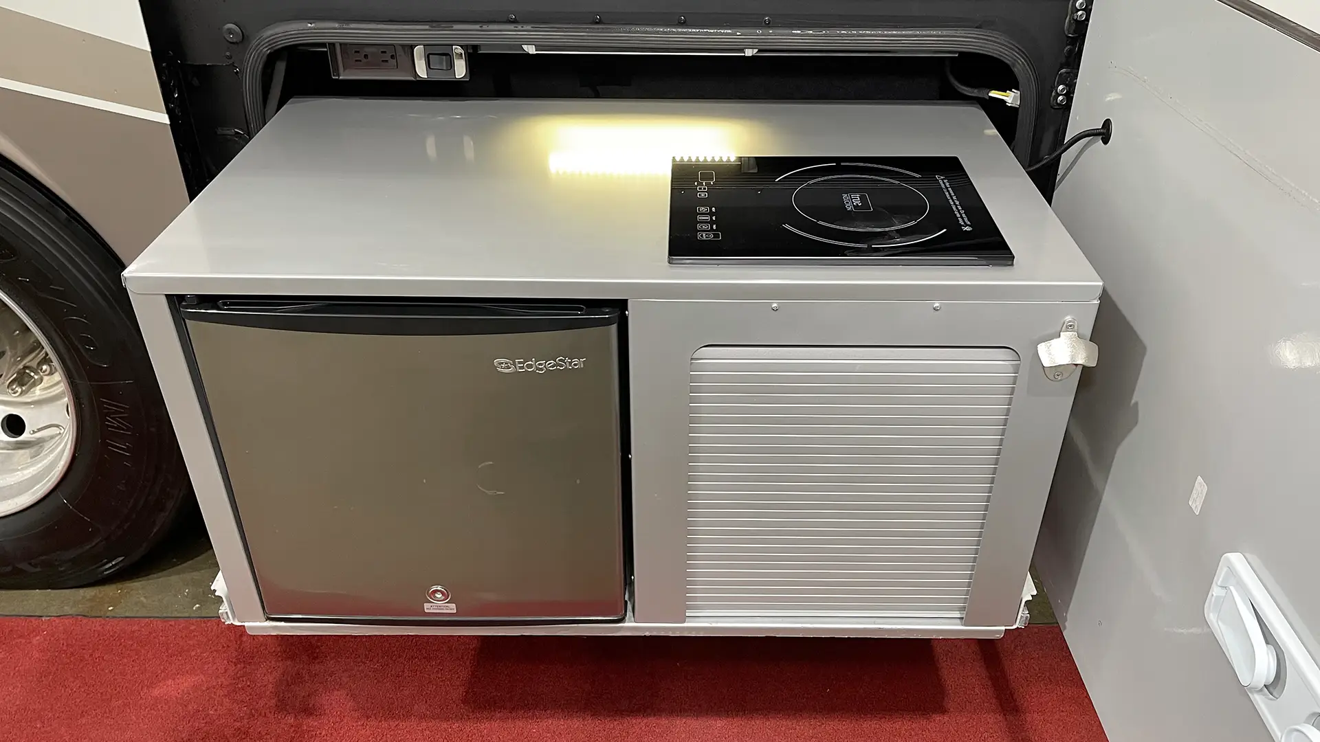 Exterior Extras | Tailgate Package: Single Burner Induction Cooktop, Steel Counter, Refrigerator/Freezer, Cold Water Access, Flexible Water Spout |