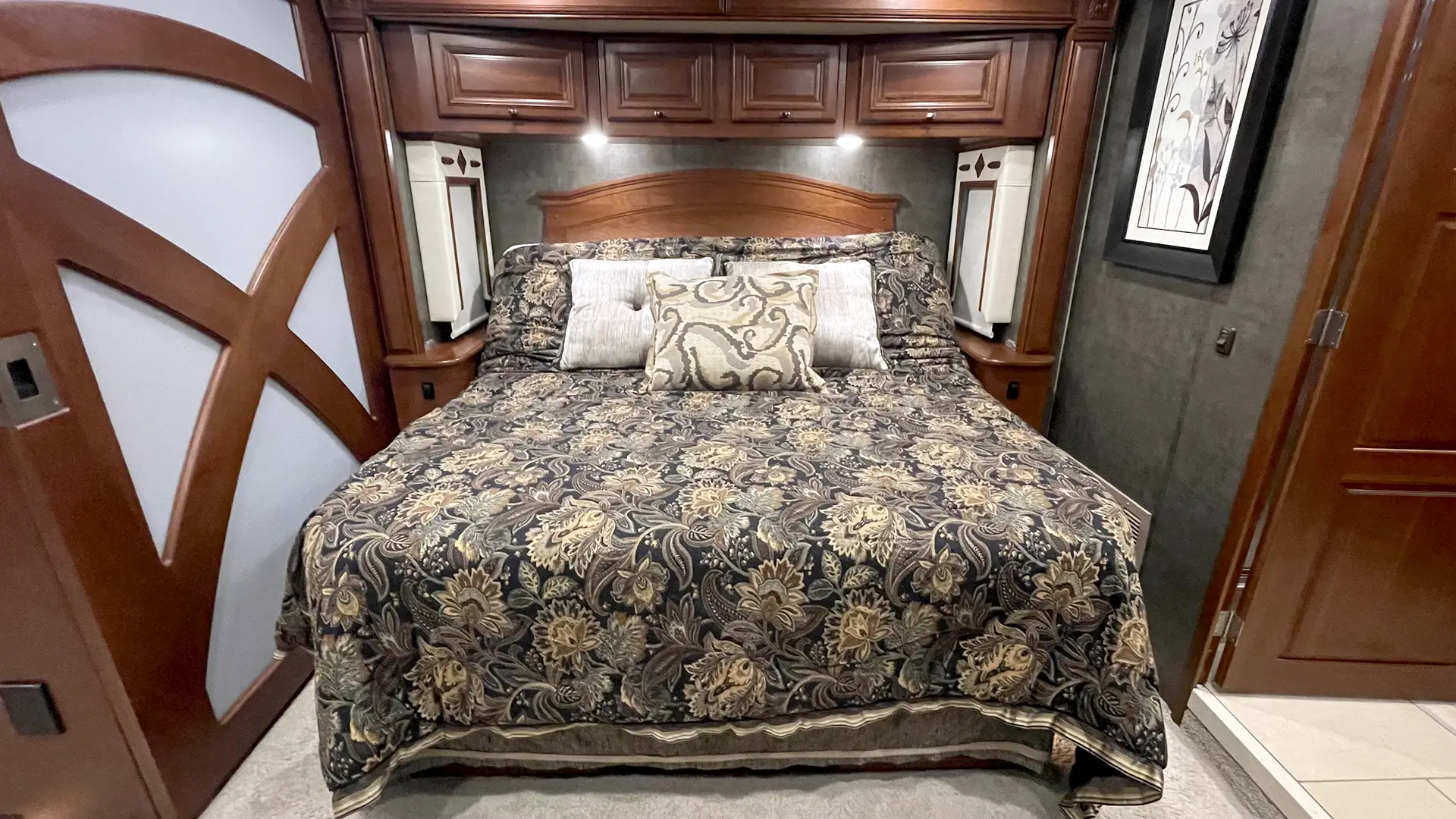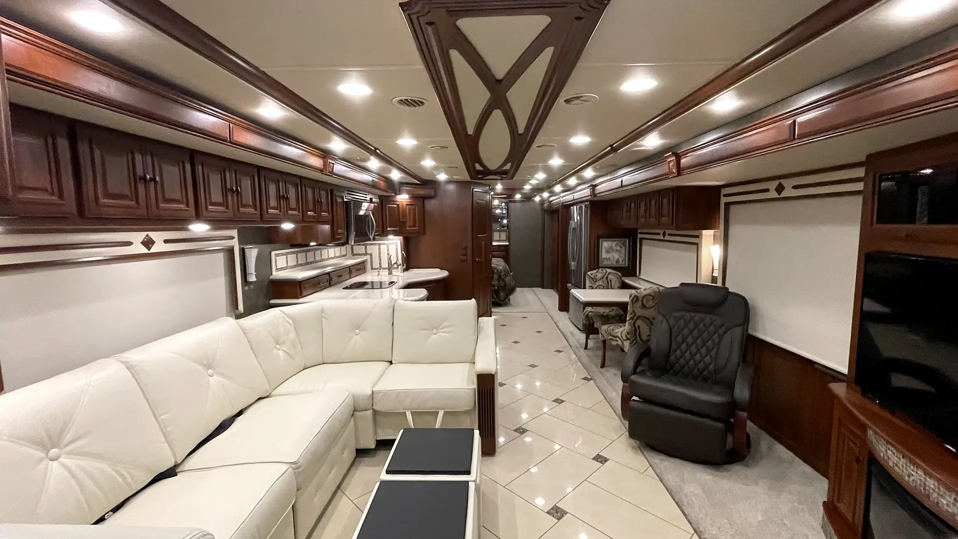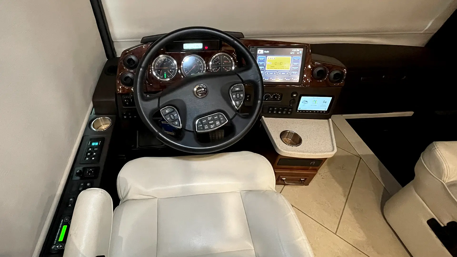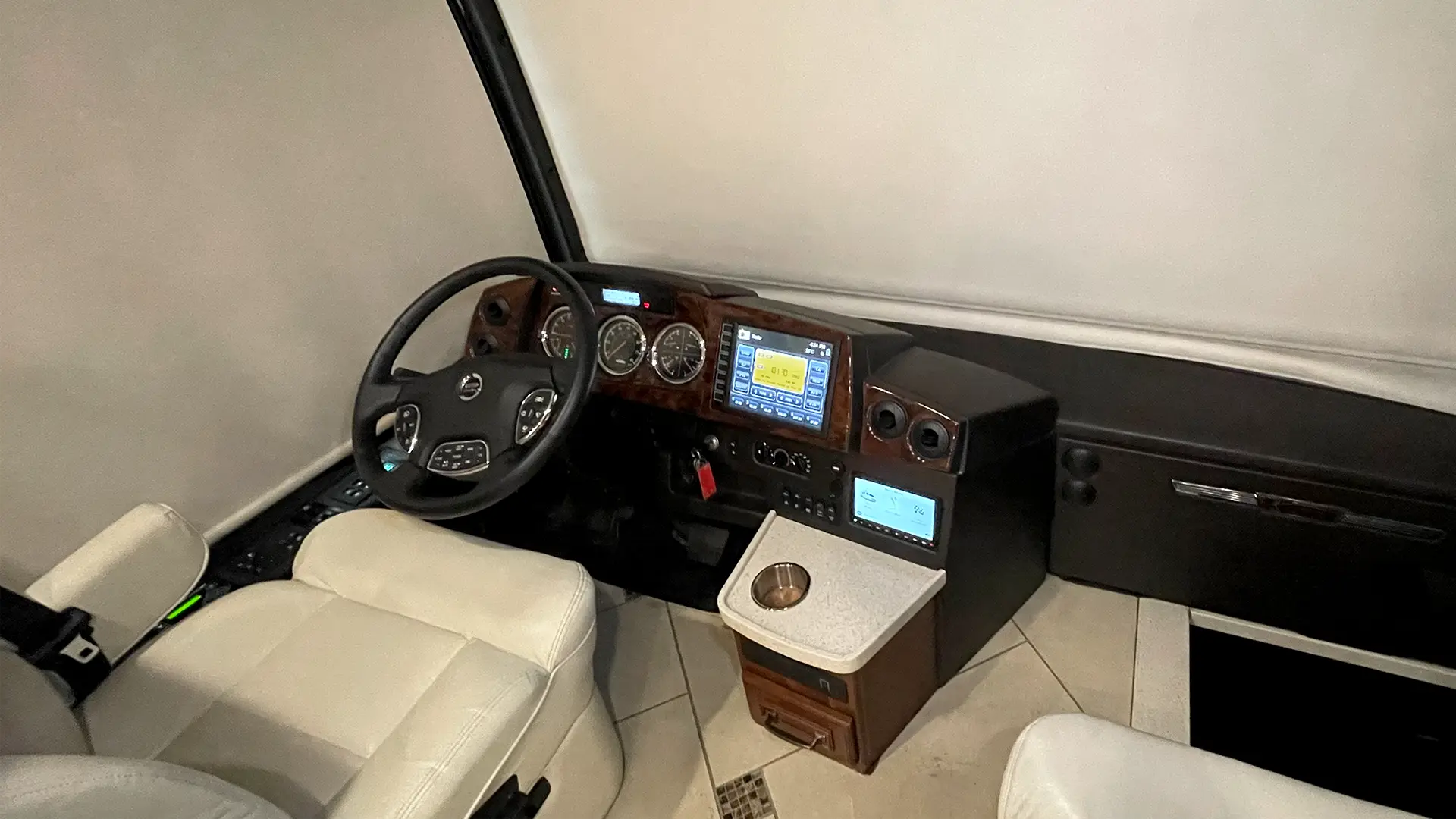 Beyond aesthetics, the Ellipse 42QD delivers a driving experience that’s smooth and confident thanks to its Freightliner Maxum chassis and powerful Cummins diesel engine. The coach is all-electric, which means quieter operation and fewer maintenance concerns. Whether parked lakeside or cruising through mountain passes, the integrated technology, like premium sound systems, multiple flat-screen TVs, and automatic levelling, ensures every moment is as relaxing as it is refined. It’s not just about getting from point A to B; it’s about savouring the journey in style.