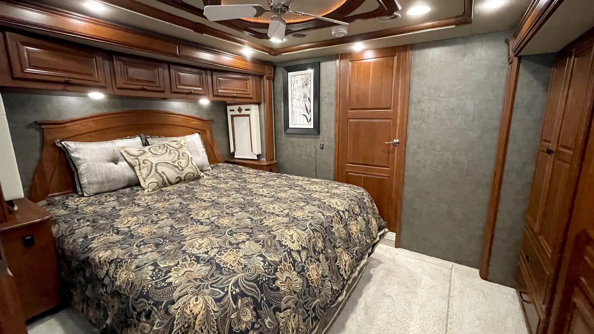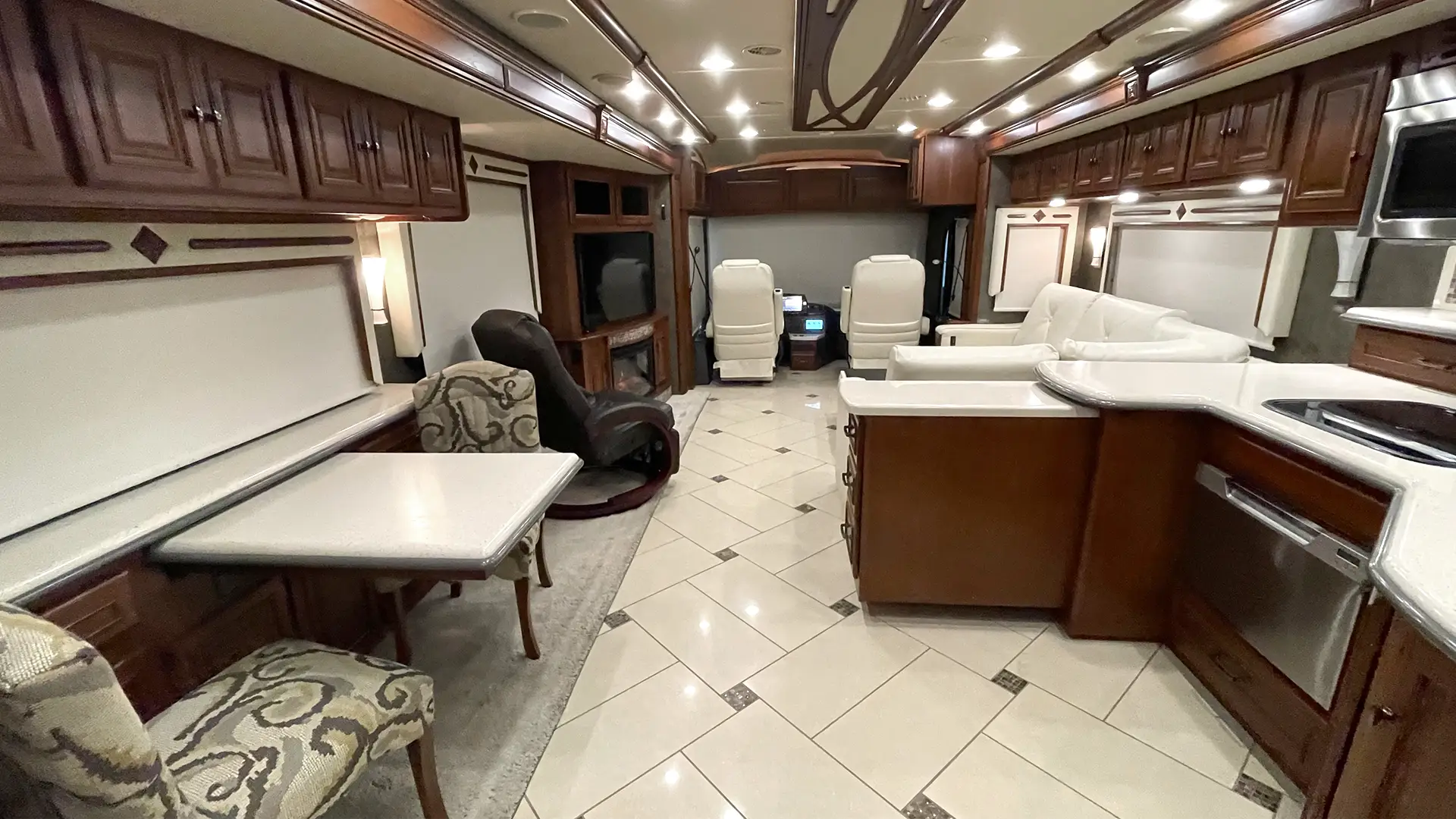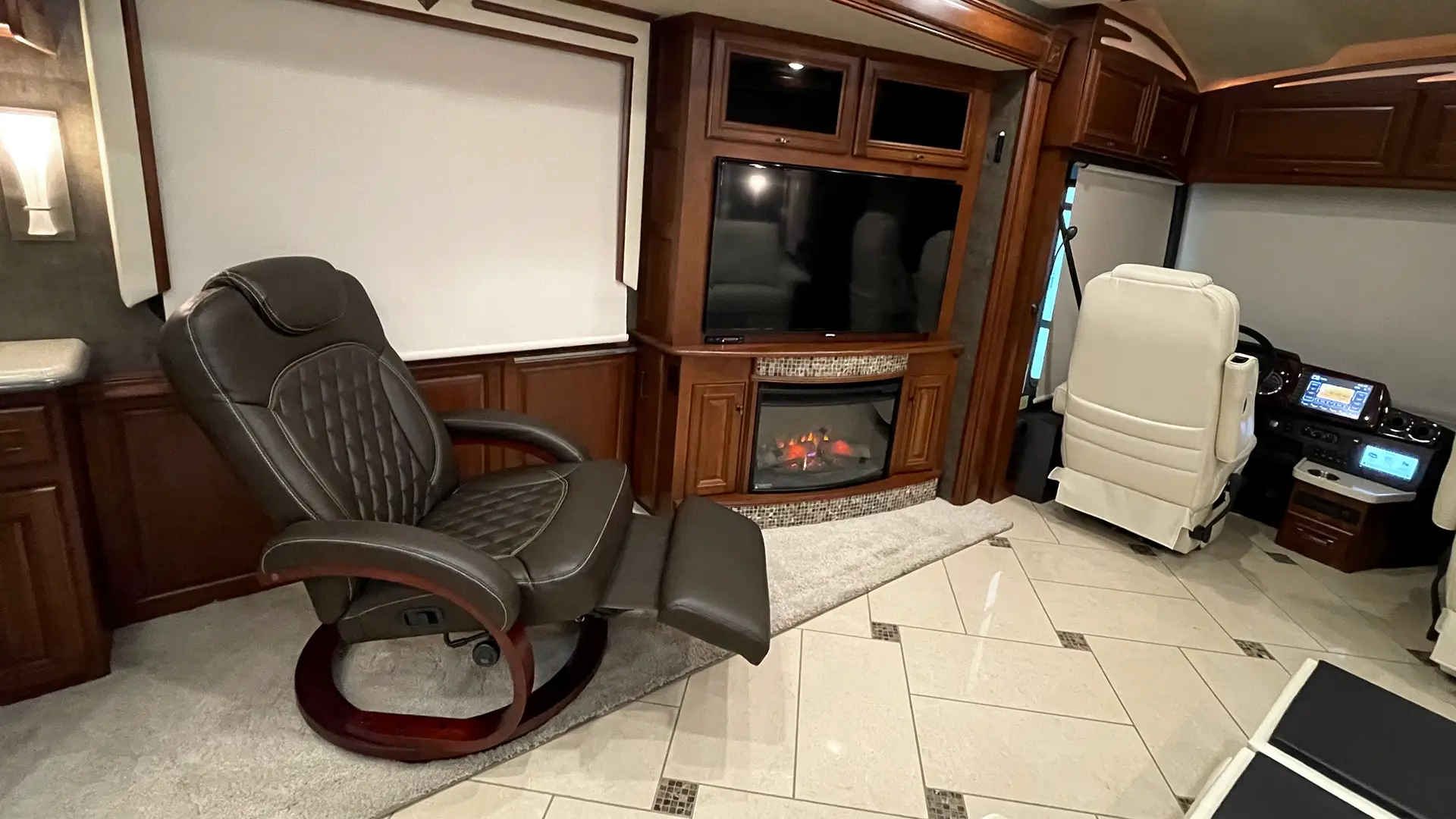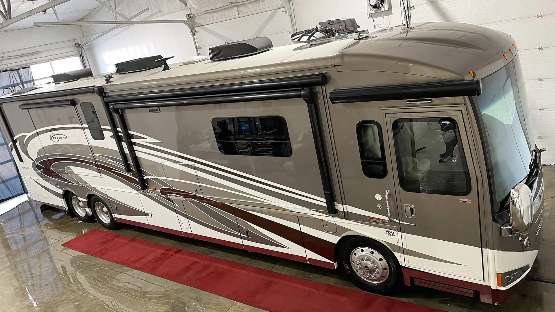 Beyond aesthetics, the Ellipse 42QD delivers a driving experience that’s smooth and confident thanks to its Freightliner Maxum chassis and powerful Cummins diesel engine. The coach is all-electric, which means quieter operation and fewer maintenance concerns. Whether parked lakeside or cruising through mountain passes, the integrated technology, like premium sound systems, multiple flat-screen TVs, and automatic levelling, ensures every moment is as relaxing as it is refined. It’s not just about getting from point A to B; it’s about savouring the journey in style.