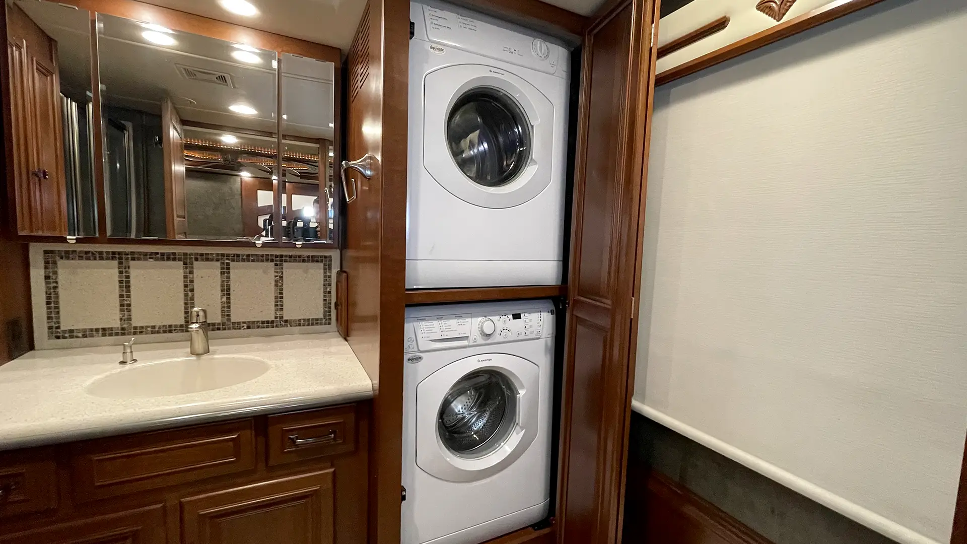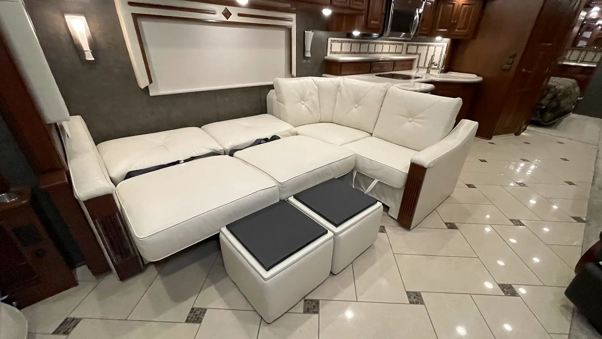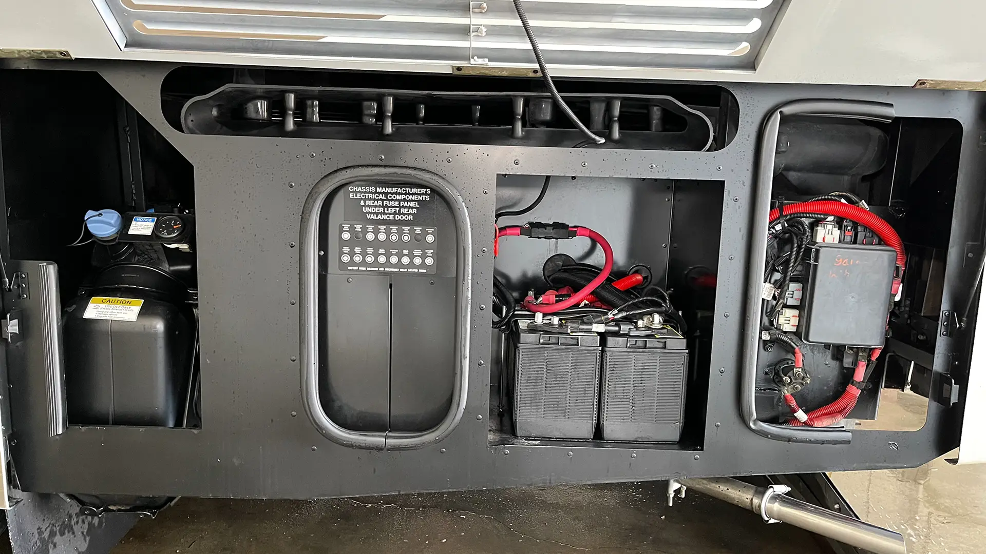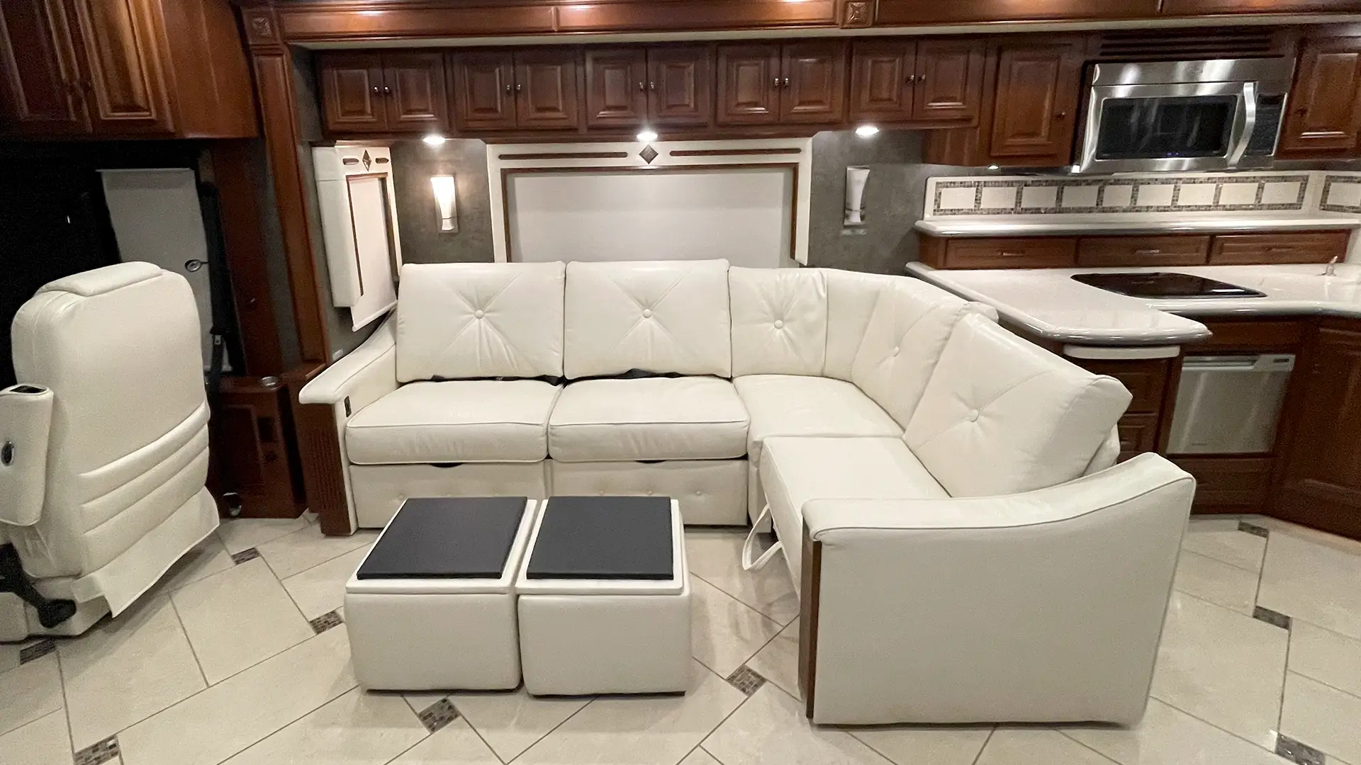 Beyond aesthetics, the Ellipse 42QD delivers a driving experience that’s smooth and confident thanks to its Freightliner Maxum chassis and powerful Cummins diesel engine. The coach is all-electric, which means quieter operation and fewer maintenance concerns. Whether parked lakeside or cruising through mountain passes, the integrated technology, like premium sound systems, multiple flat-screen TVs, and automatic levelling, ensures every moment is as relaxing as it is refined. It’s not just about getting from point A to B; it’s about savouring the journey in style.