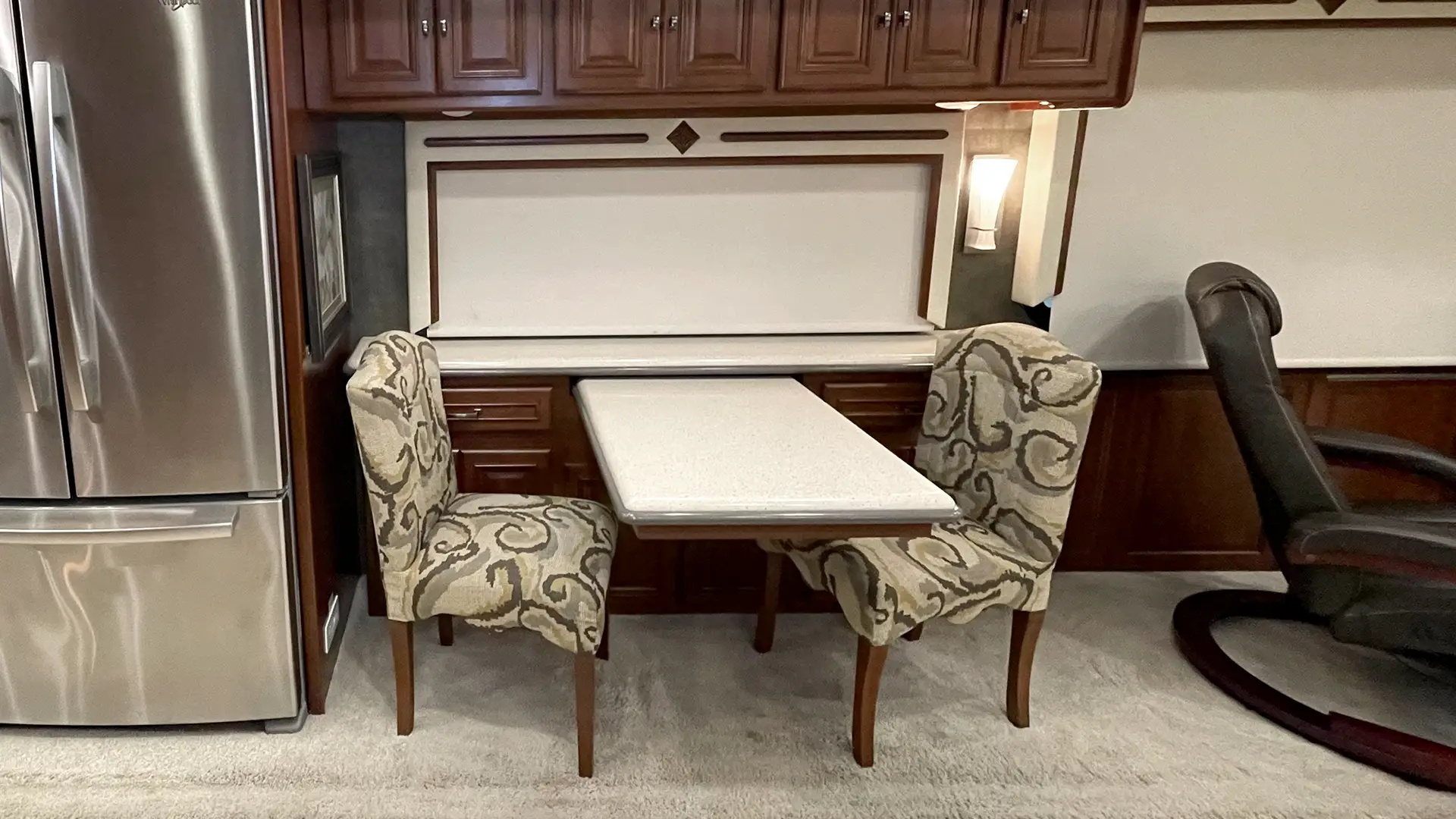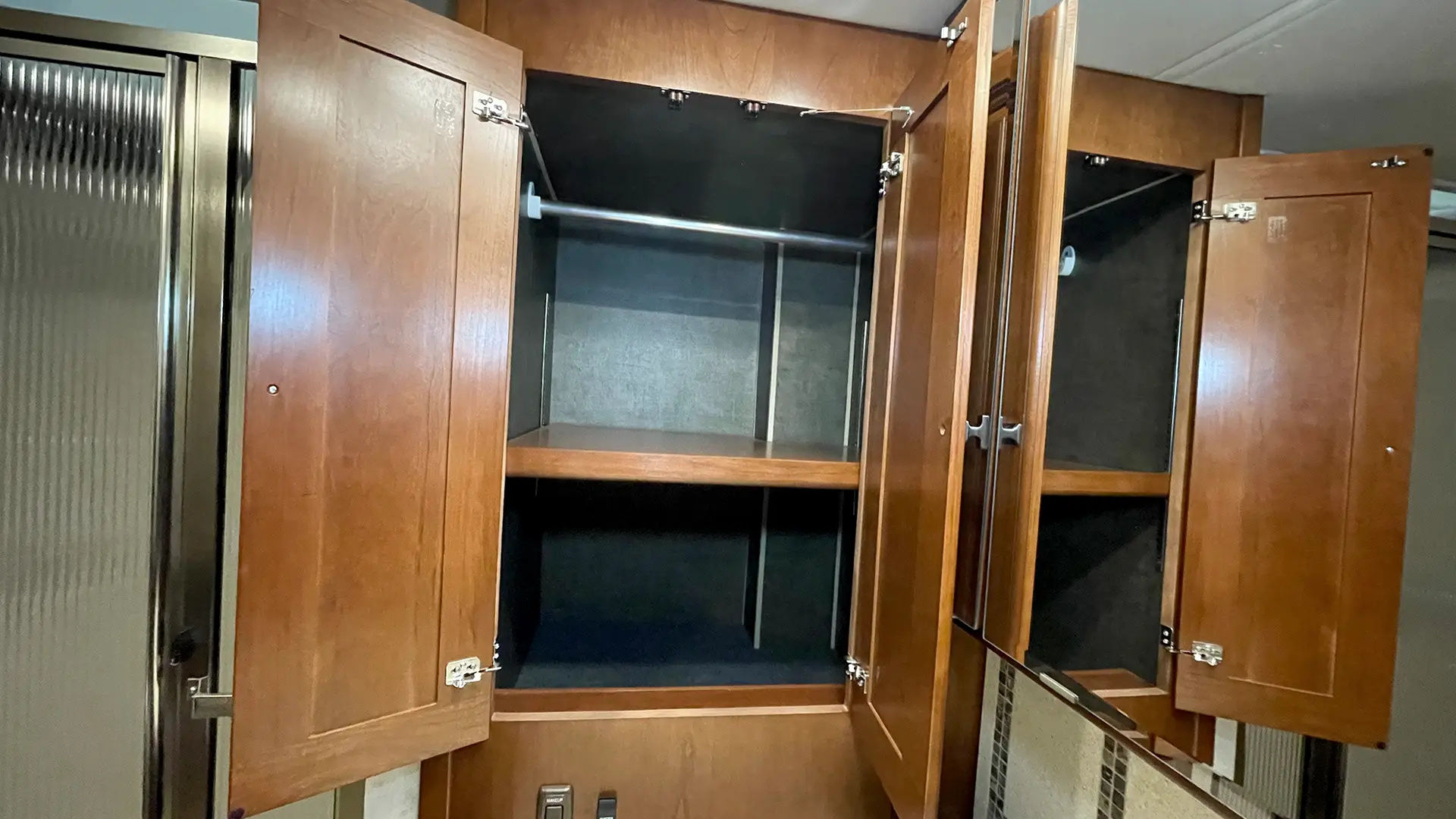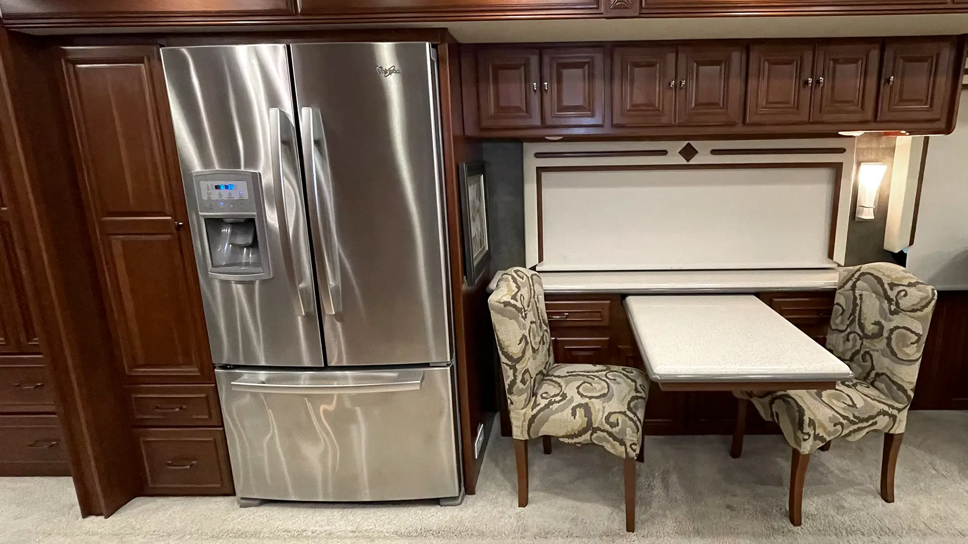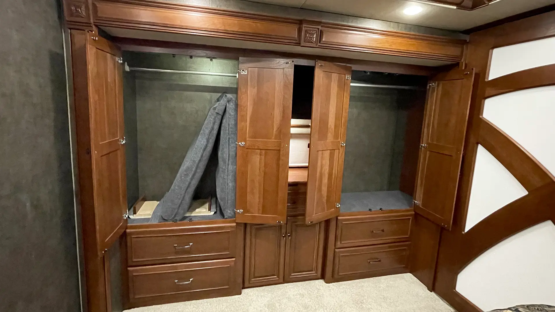 Beyond aesthetics, the Ellipse 42QD delivers a driving experience that’s smooth and confident thanks to its Freightliner Maxum chassis and powerful Cummins diesel engine. The coach is all-electric, which means quieter operation and fewer maintenance concerns. Whether parked lakeside or cruising through mountain passes, the integrated technology, like premium sound systems, multiple flat-screen TVs, and automatic levelling, ensures every moment is as relaxing as it is refined. It’s not just about getting from point A to B; it’s about savouring the journey in style.