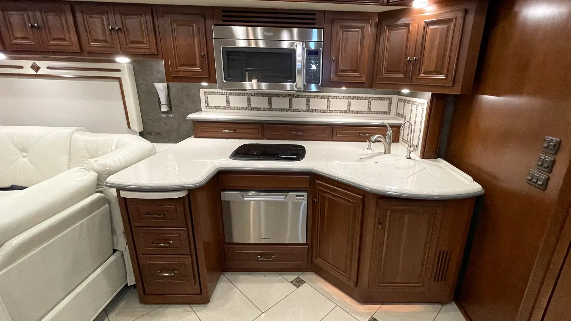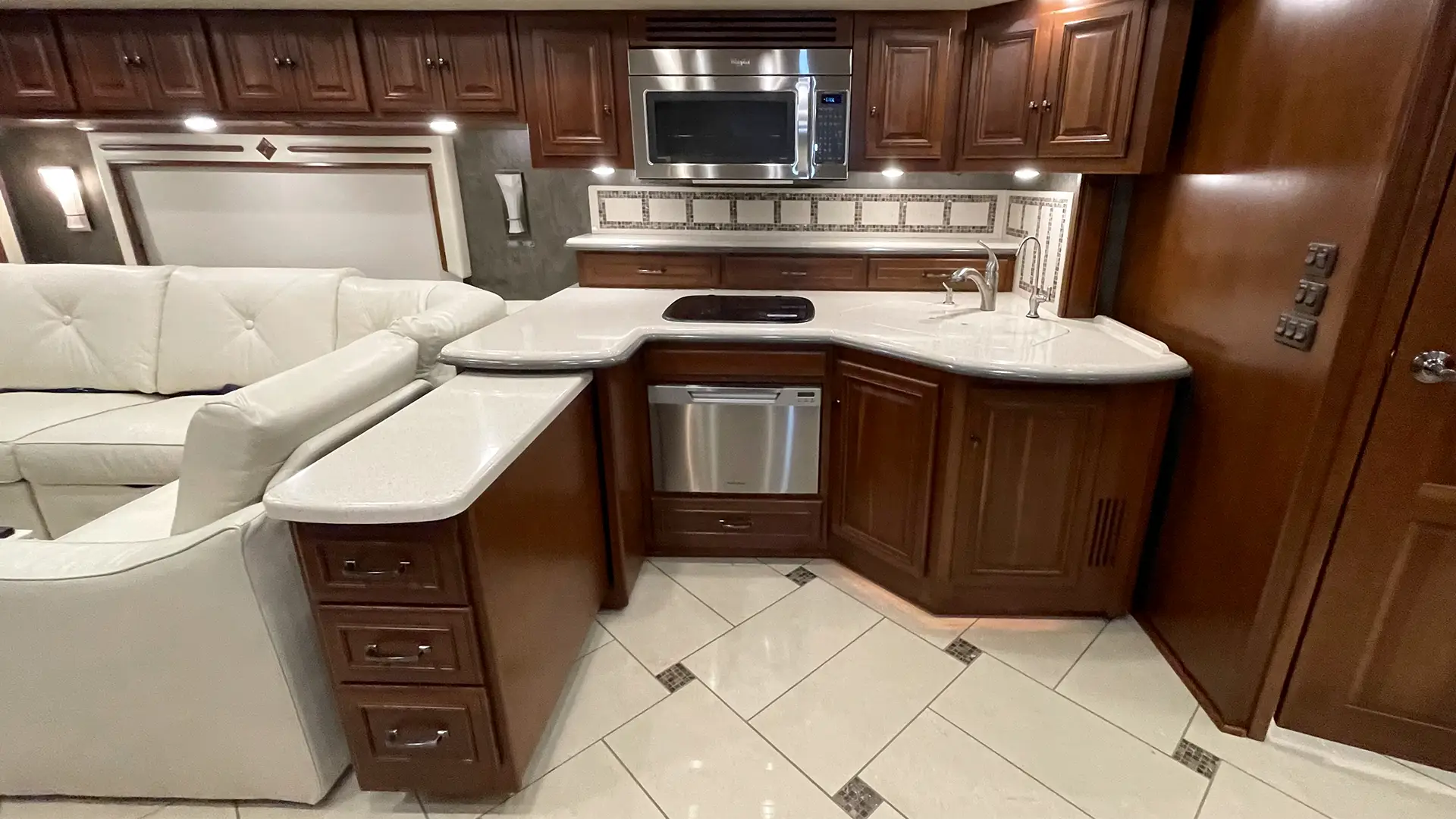 Kitchen Extras | Pull-Out Countertop Extension; Corian Countertops and Backsplash; Double Bowl Stainless Steel Sink; Pantry Closet |