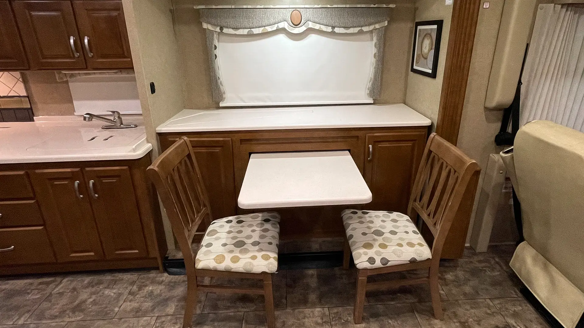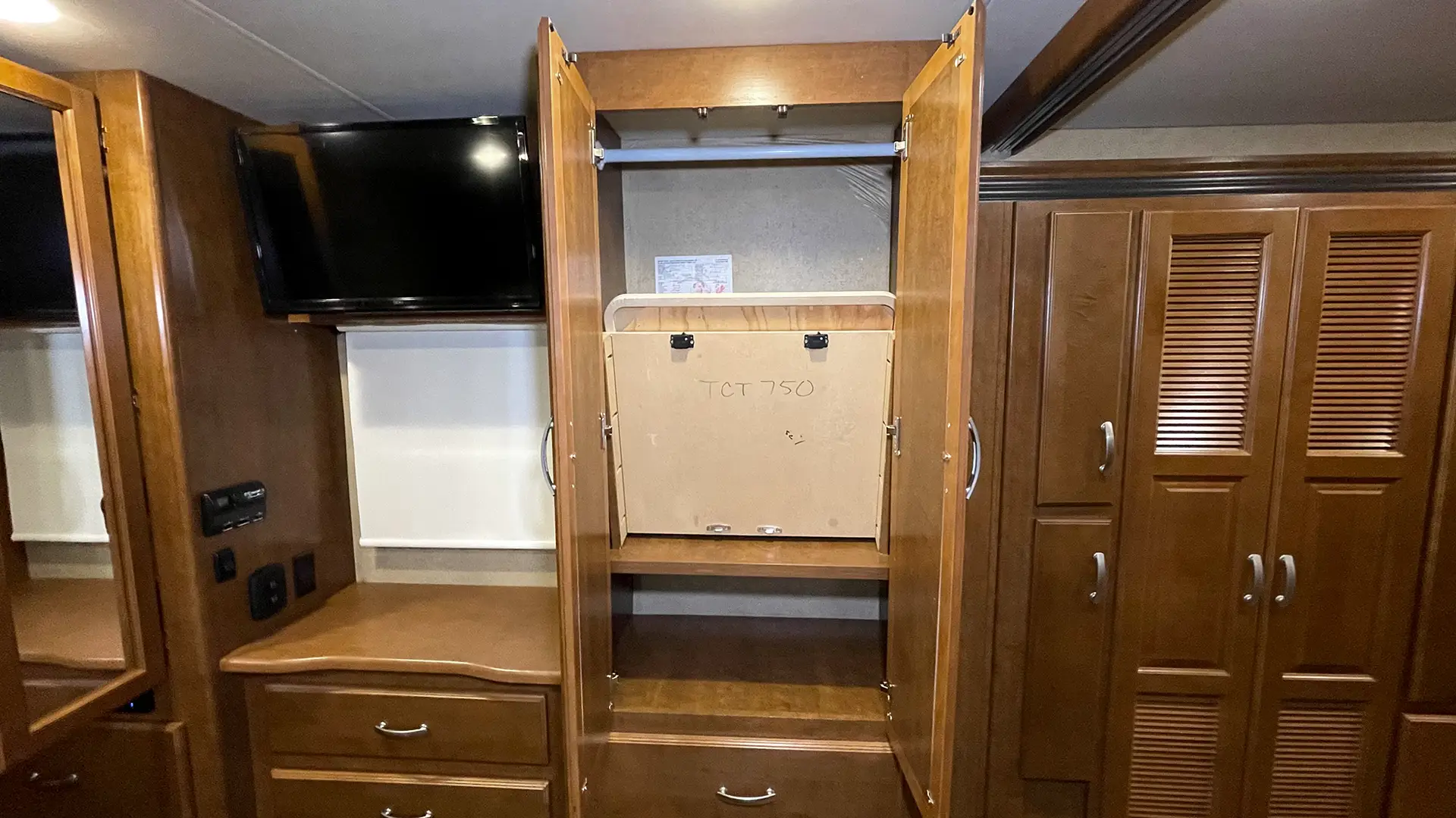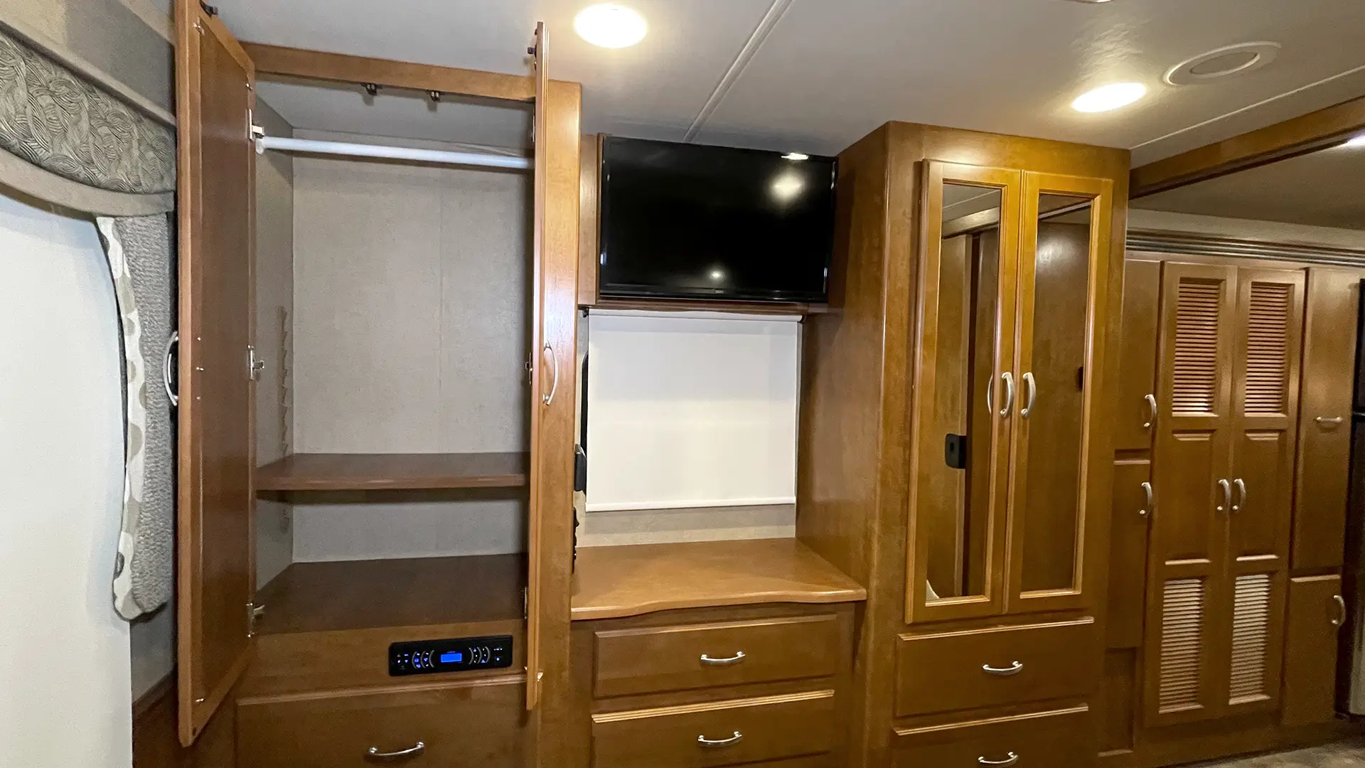 | Televisions | 40” LED Retractable Living Area; 28” LED Bedroom |