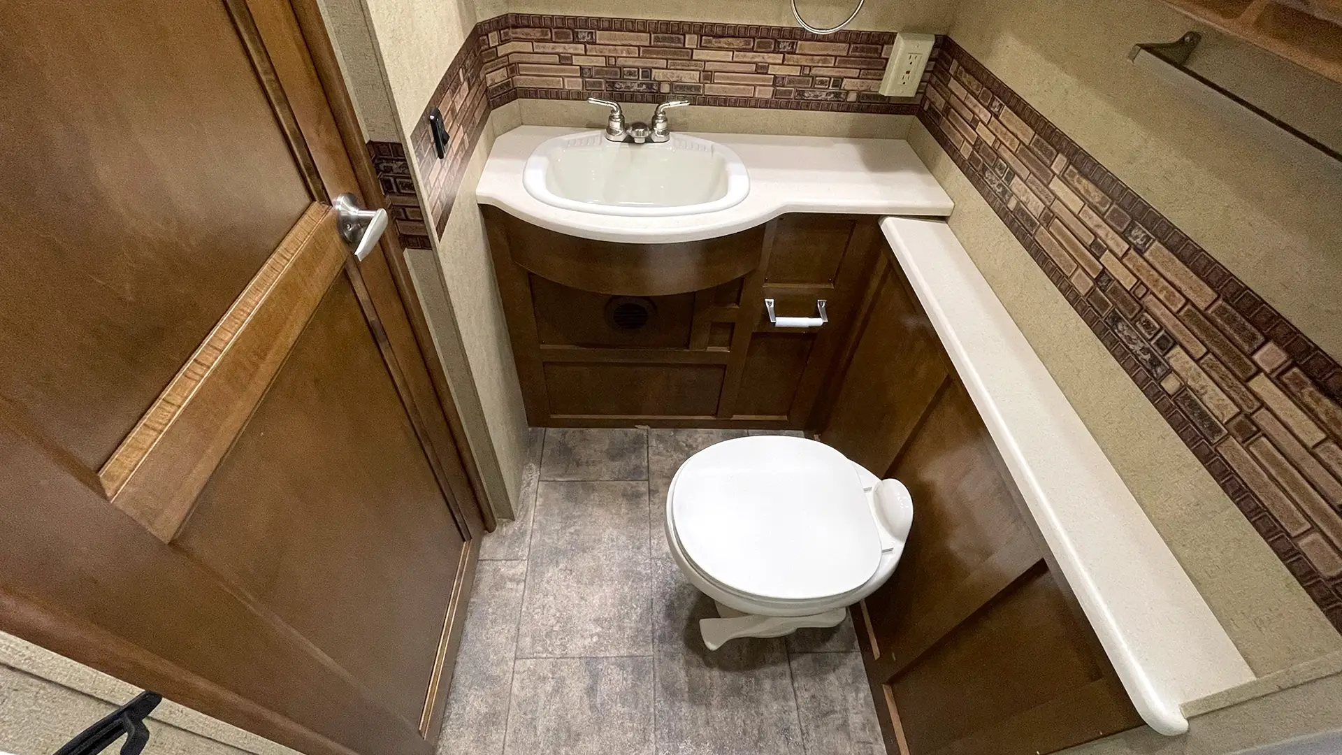 Driving the Challenger is equally rewarding. Built on a Ford F53 Super Duty chassis with a smooth V10 engine, it offers confident handling and a commanding view of the road. Side and rear-view cameras, a power driver’s seat, and heated mirrors enhance safety and ease, especially on long hauls or tight campground maneuvers. Altogether, the 35HT isn’t just about getting from point A to B, it’s about savoring the journey in a space that feels tailored to your lifestyle.