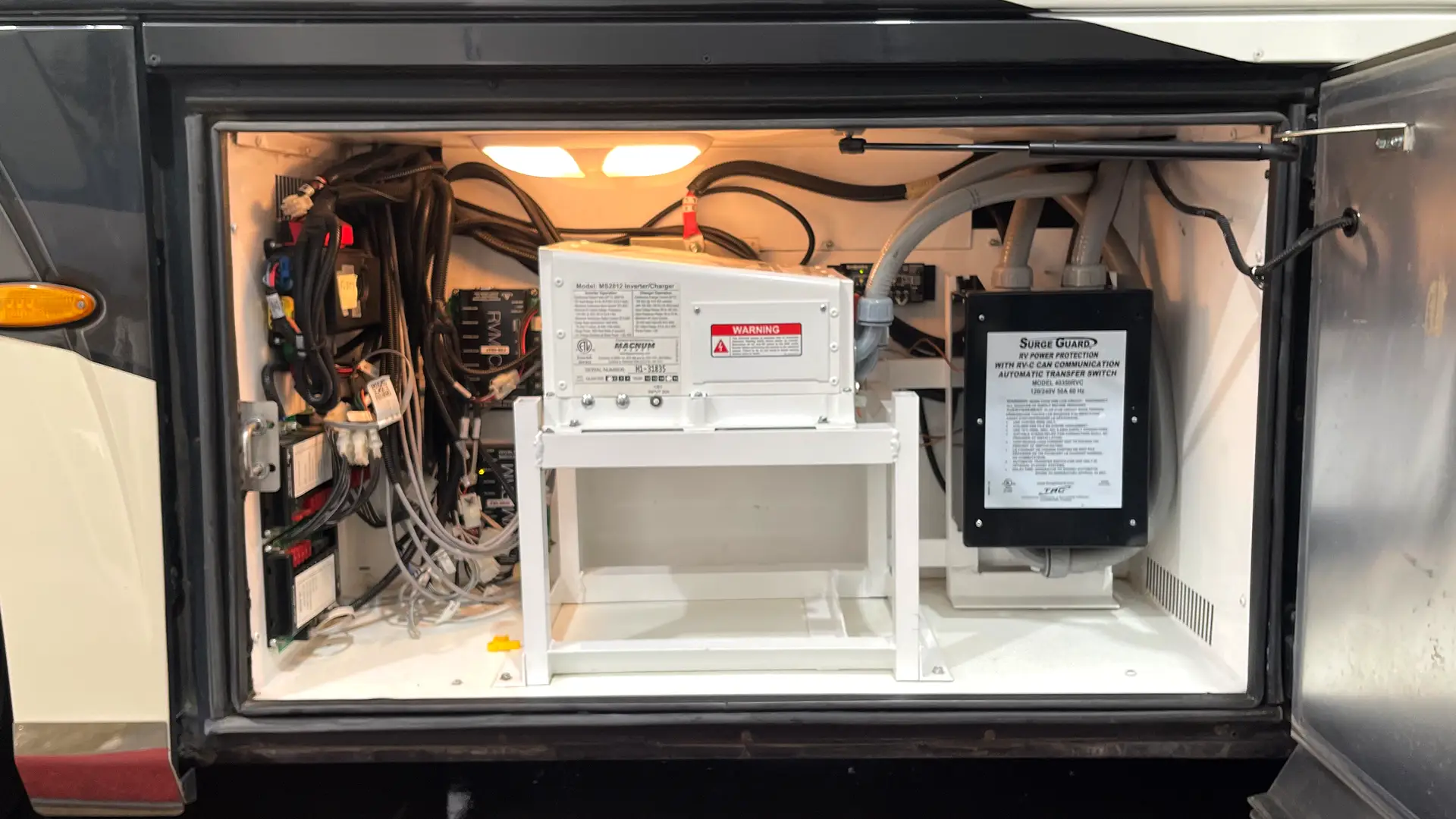 | Power | 10.0 kW Onan Quiet Diesel Generator on Power Slide-Out Tray; Solar Charging Panel (95-watt); Pure Sine Wave Inverter/Charger (2800-watt) |