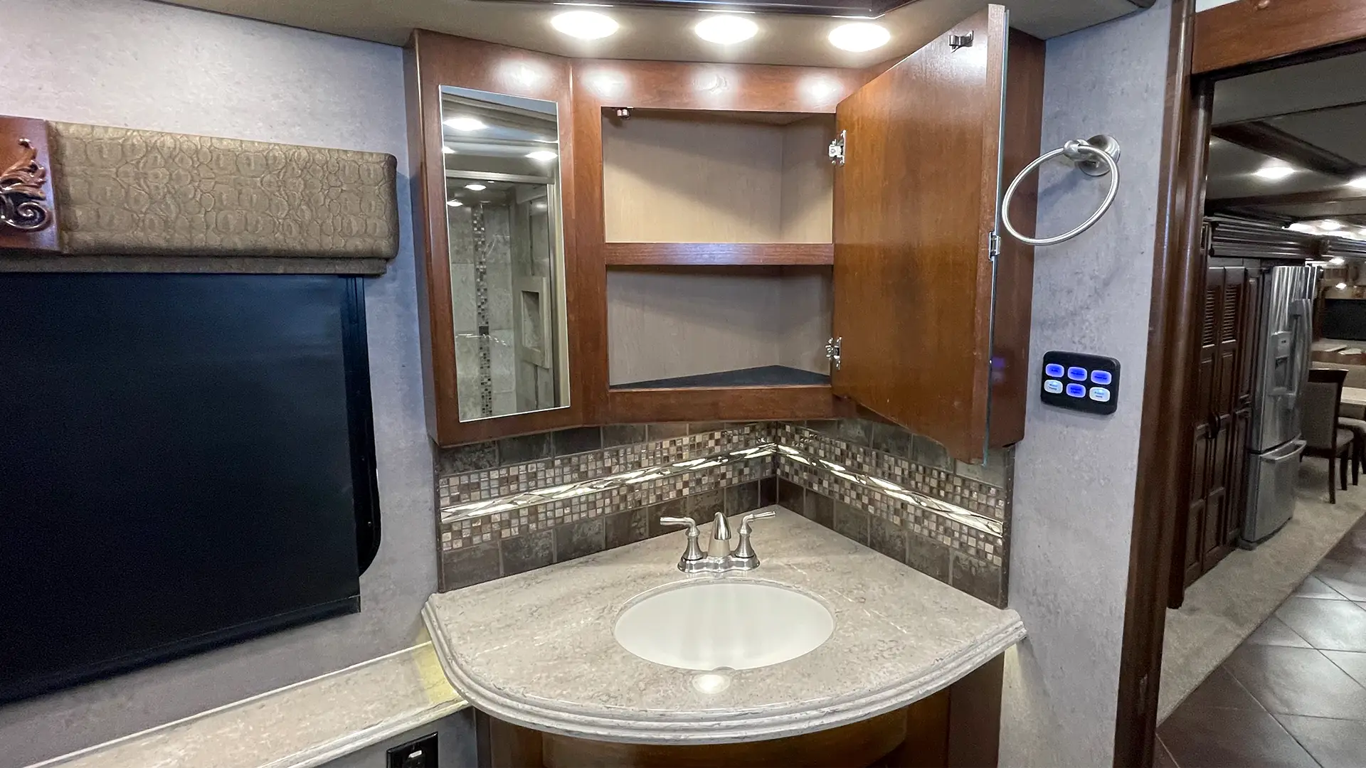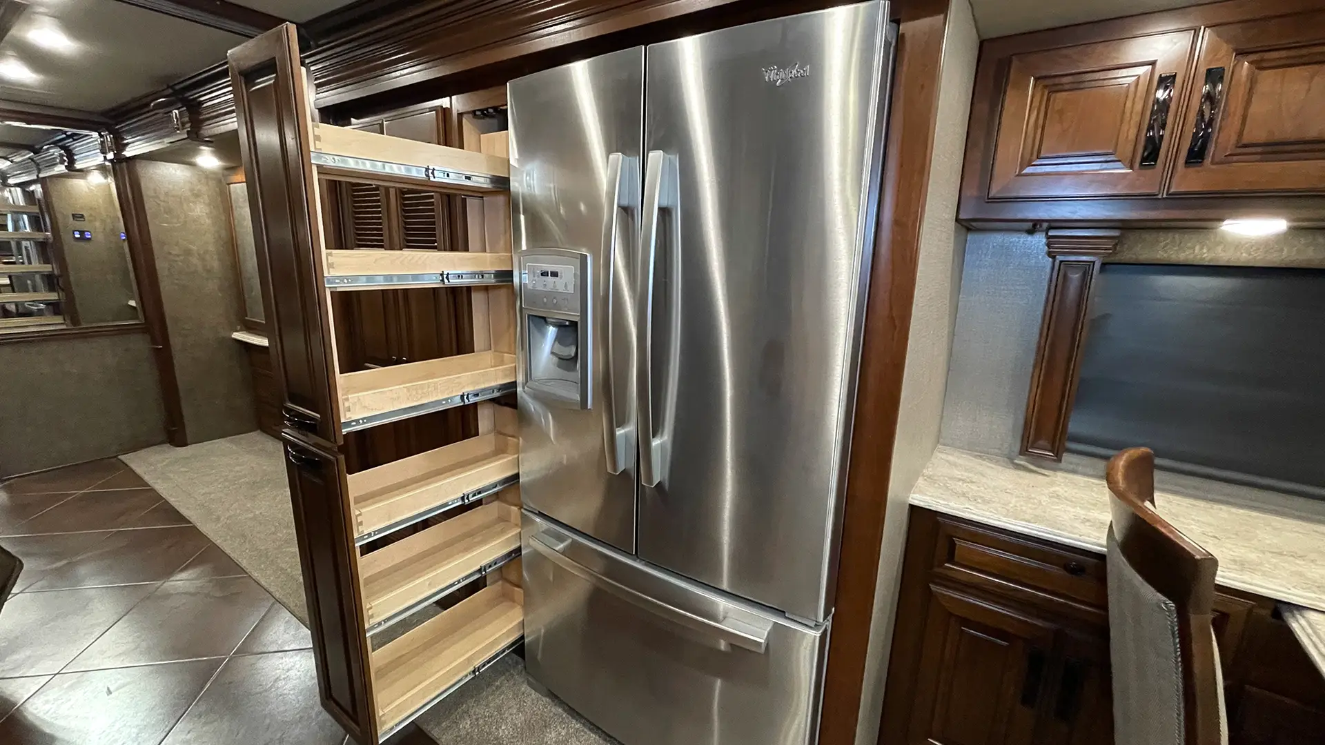 | Driver Console | Under-Mount Stainless Steel Double Bowl Sink w/High-Rise Faucet and Pull-Out Sprayer; Pantry Space; Decorative Backsplash w/LED Light Strip; Pull-Out Countertop Extension |